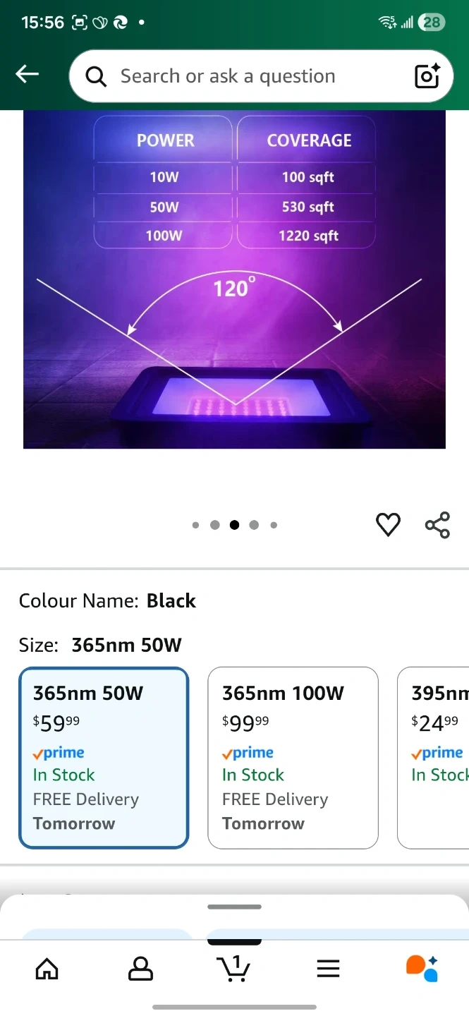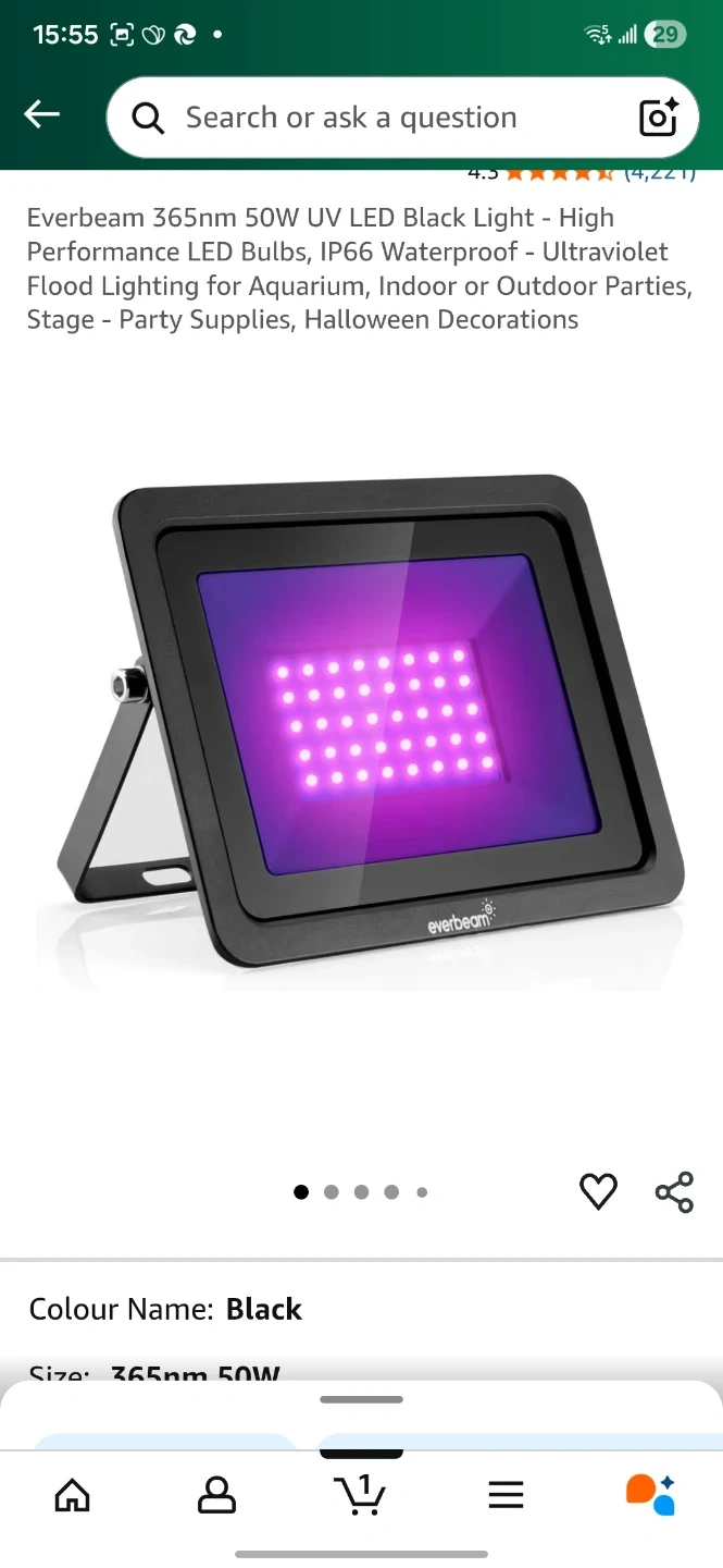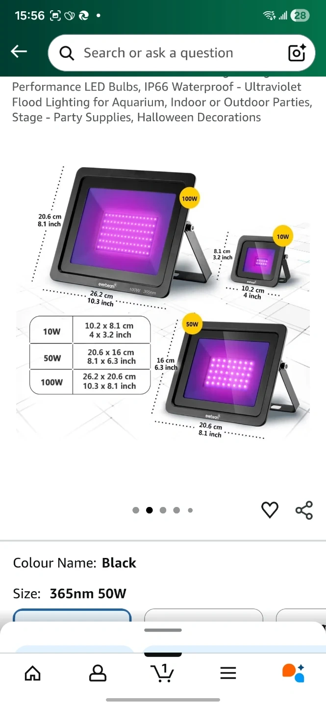 Selling an Everbeam 365nm 50W UV LED Black Light in black. It's waterproof and great for indoor or outdoor parties, stage, or Halloween decorations! It provides 530 sqft of coverage.