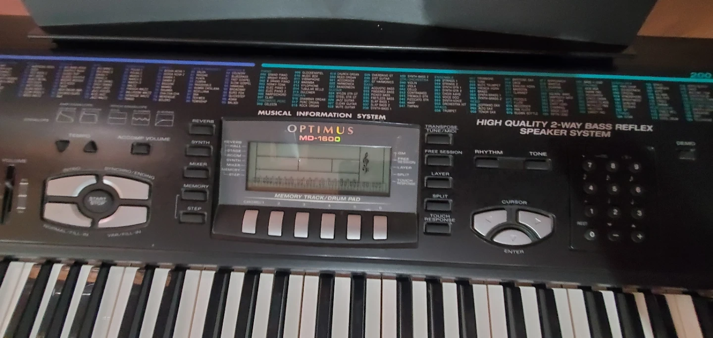 Selling an Optimus MD-1600 keyboard. It's a high-quality 2-way bass reflex speaker system with a musical information system. Perfect for anyone looking to learn or practice! Note, One key lever is broken