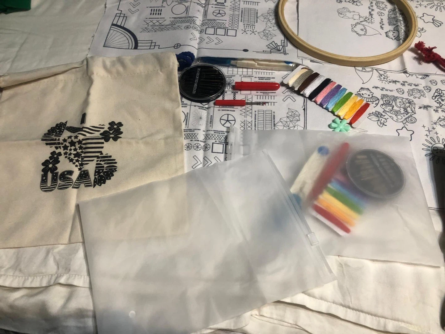 Embroidery kit with everything you need to get started! Includes a variety of colourful threads, needles, and a printed fabric pattern. Perfect for beginners or anyone looking to try a new craft!