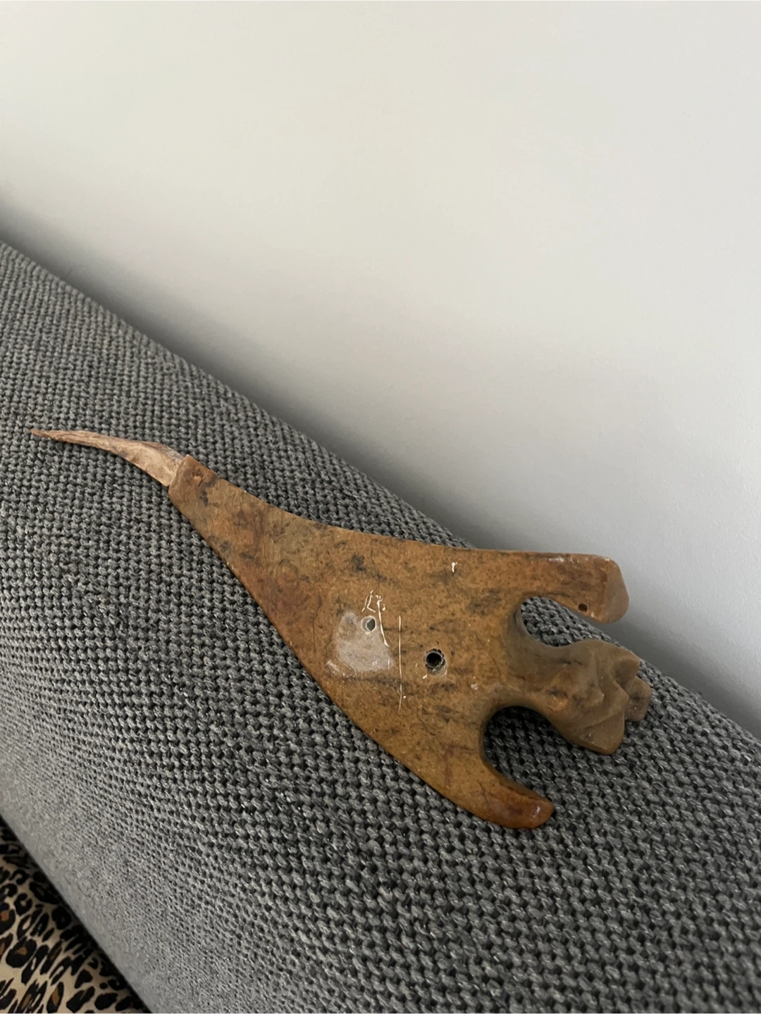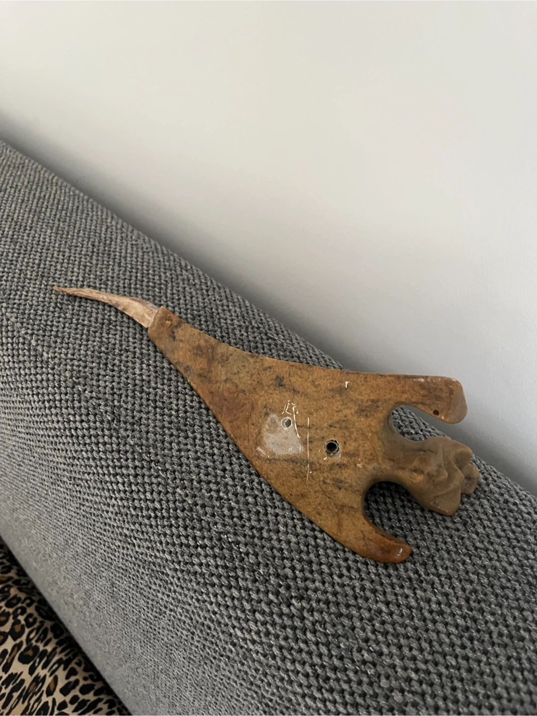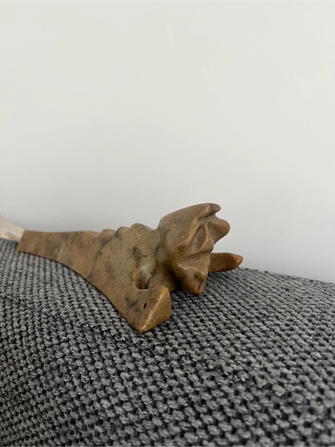 Selling a unique vintage carved birdstone sculpture possibly on solid granite?. It features intricate details and a distinctive design. A great piece for collectors or anyone looking to add a touch of artistry to their space. 10” x 4”