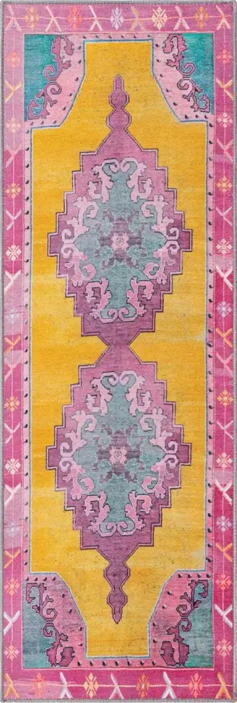 Warm up your home or apartment with these matching beautiful Turkish area rugs! They feature a vibrant yellow base with pink and purple accents in a geometric pattern. They are perfect for adding a pop of colour and character to any room. Runner is 2 x 6 feet ($75) and rectangular rug is 5 x 8 feet ($175). Flat woven / low pile. Easy to clean! Never used - stored. Smoke free. Pick up in Guelph