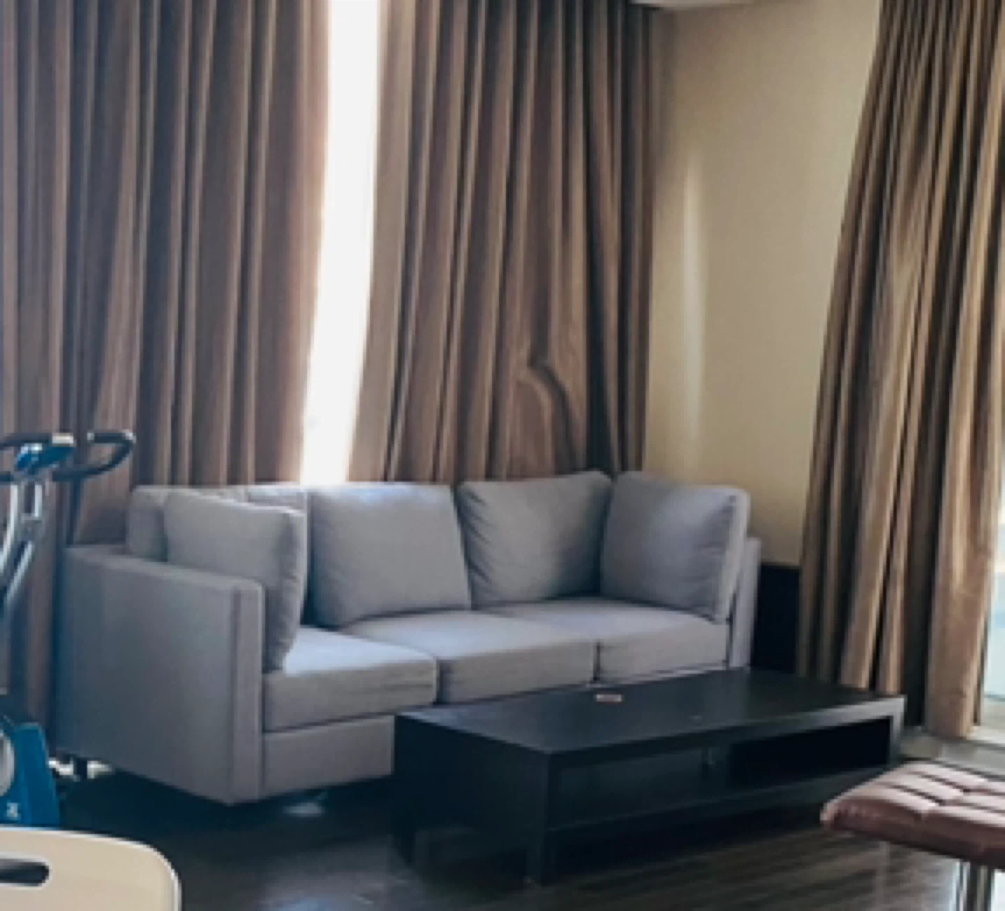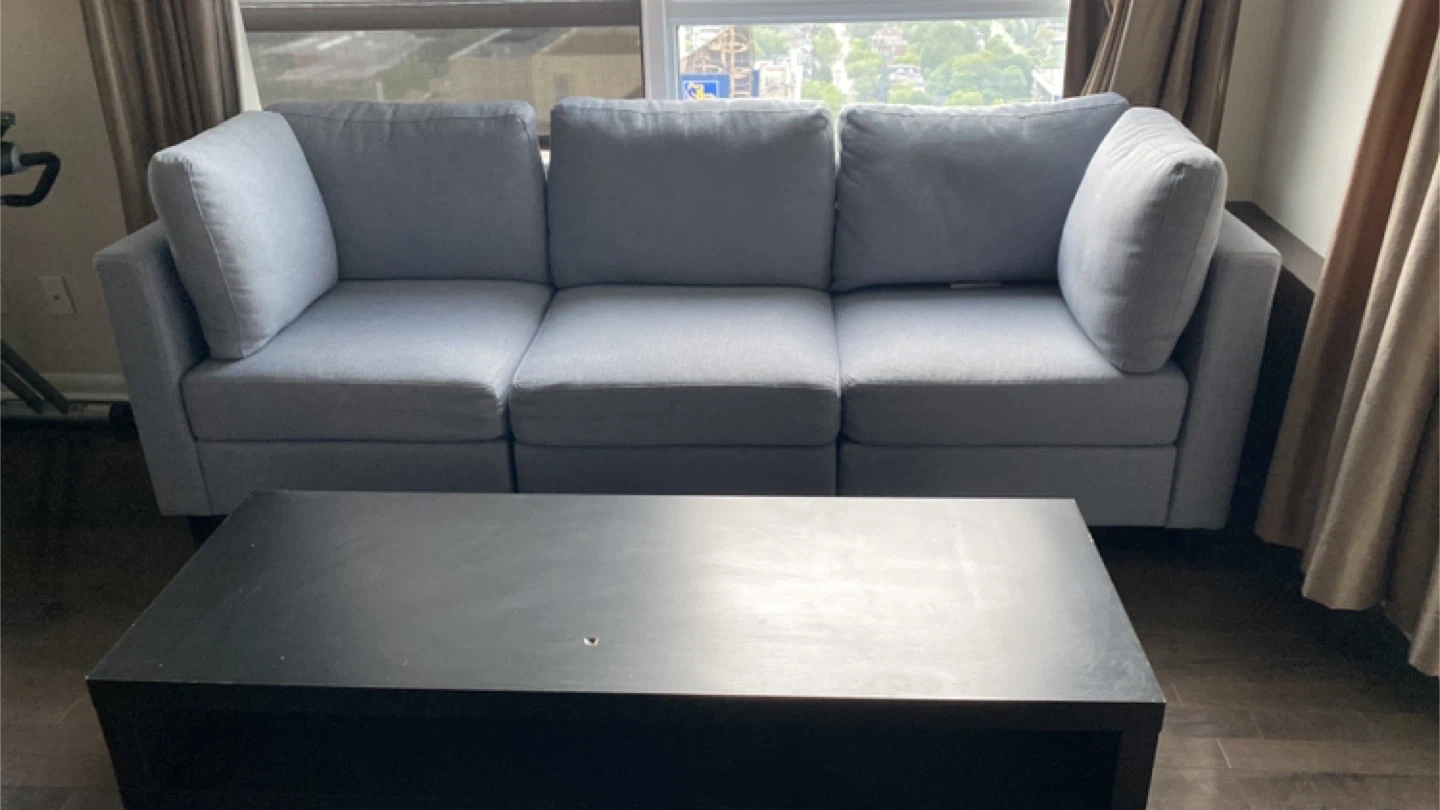 Selling a comfy grey three-seat sofa! It's in great shape and would be perfect for a living room or den. The cushions are soft and supportive, making it a great spot to relax after a long day. It's a stylish and functional piece!