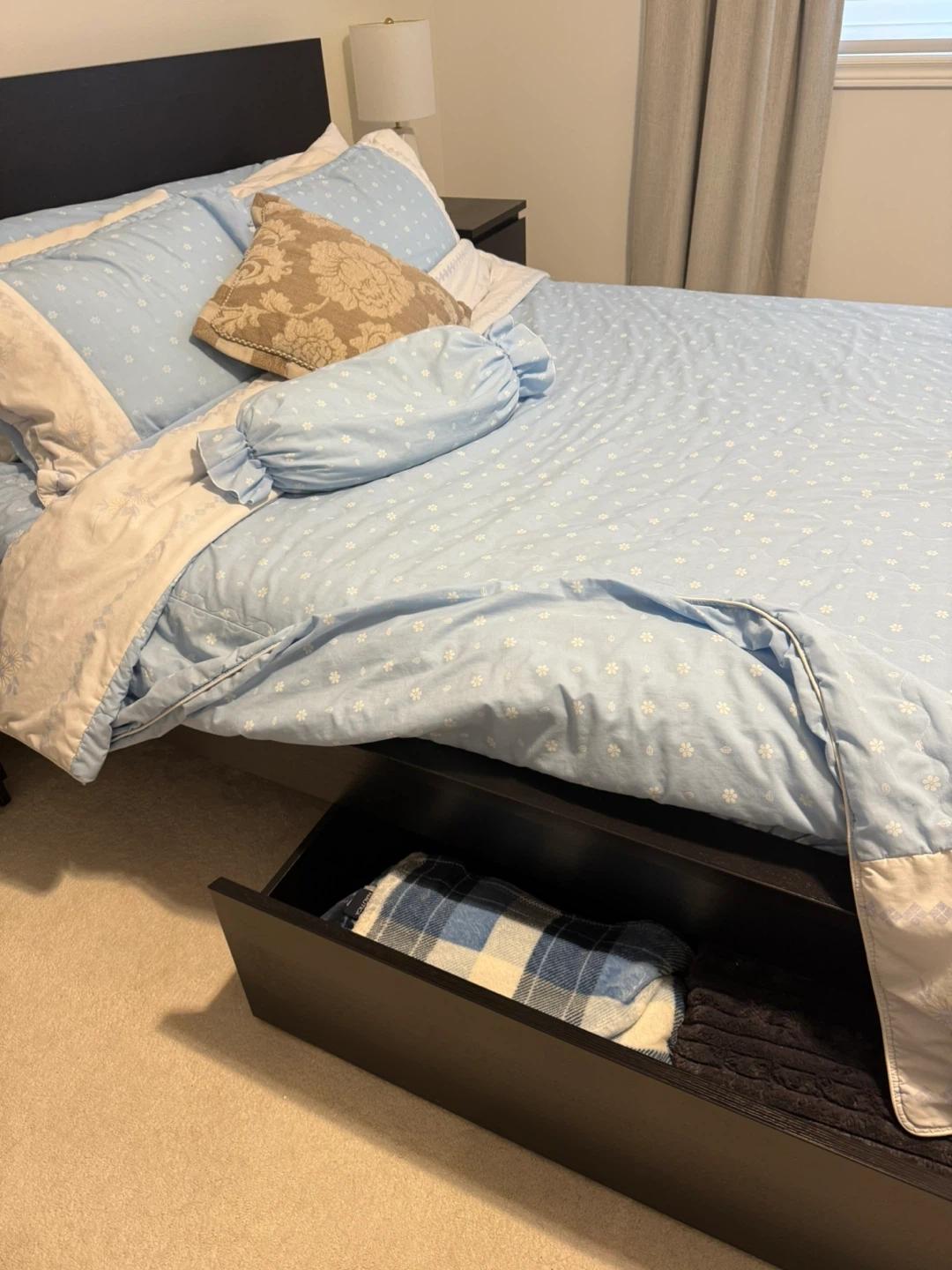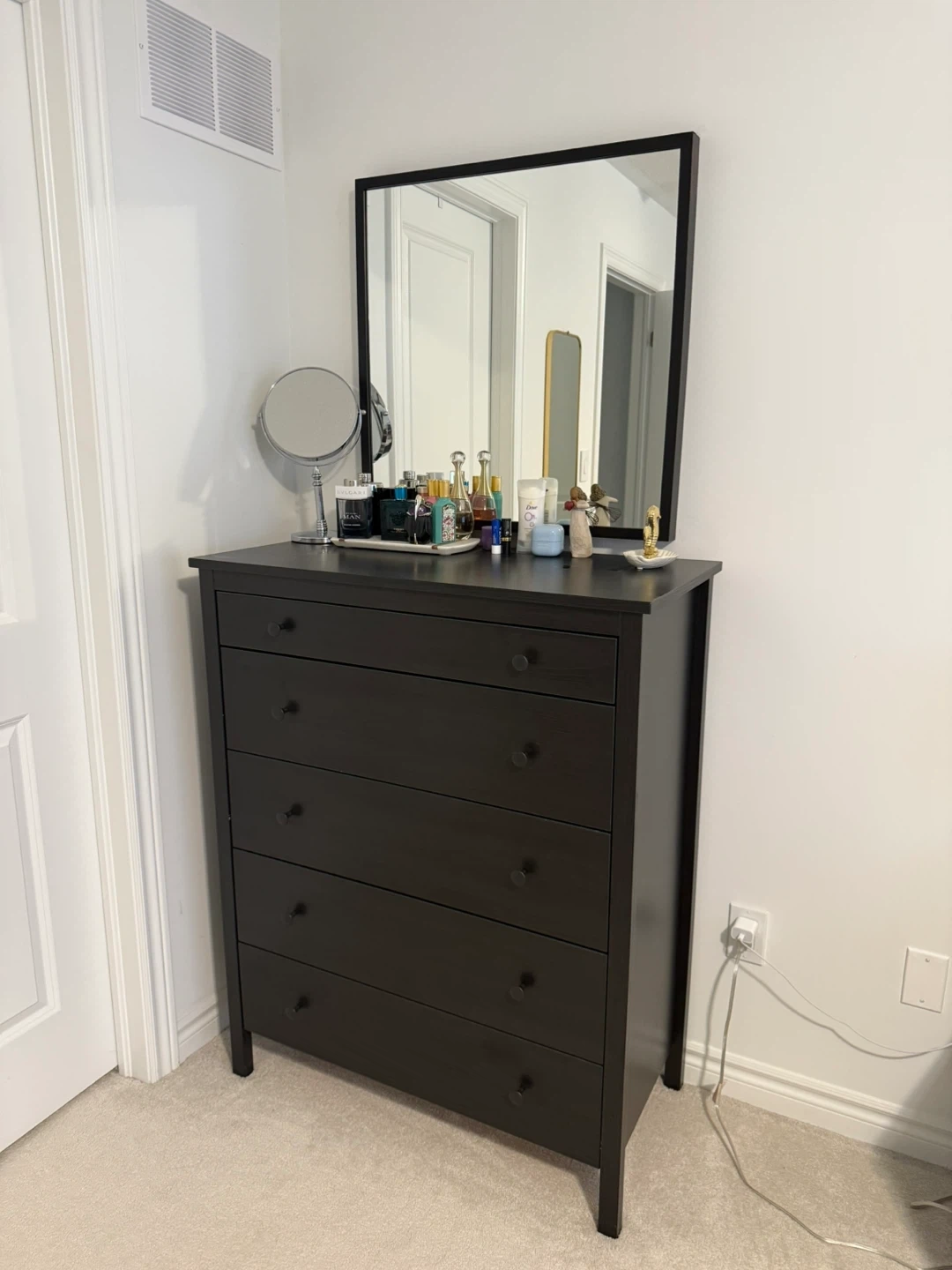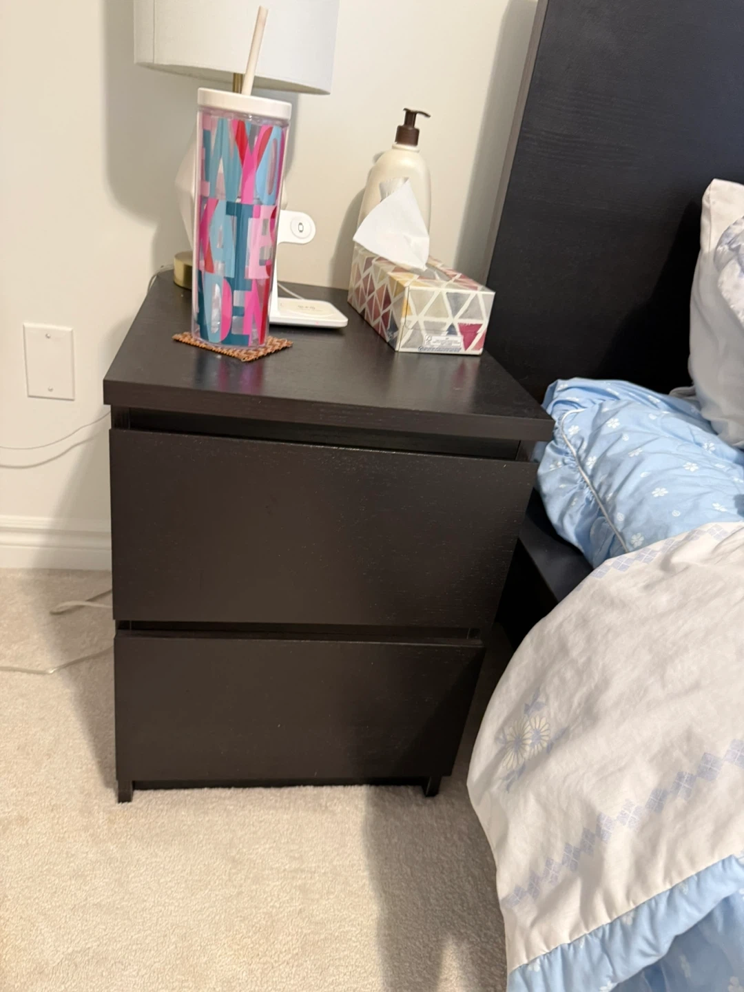 Selling a used IKEA Hemnes dresser and MALM queen bed frame and mattress, Hemnes 5-drawer chest & 2 night stand . They are in good condition and would be a great addition to any bedroom!