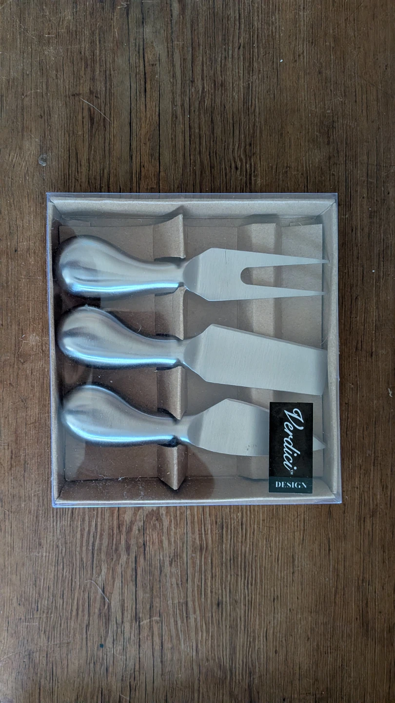 Selling a brand new Verdici cheese knife set! It comes in its original packaging, perfect for gifting or adding to your own collection.