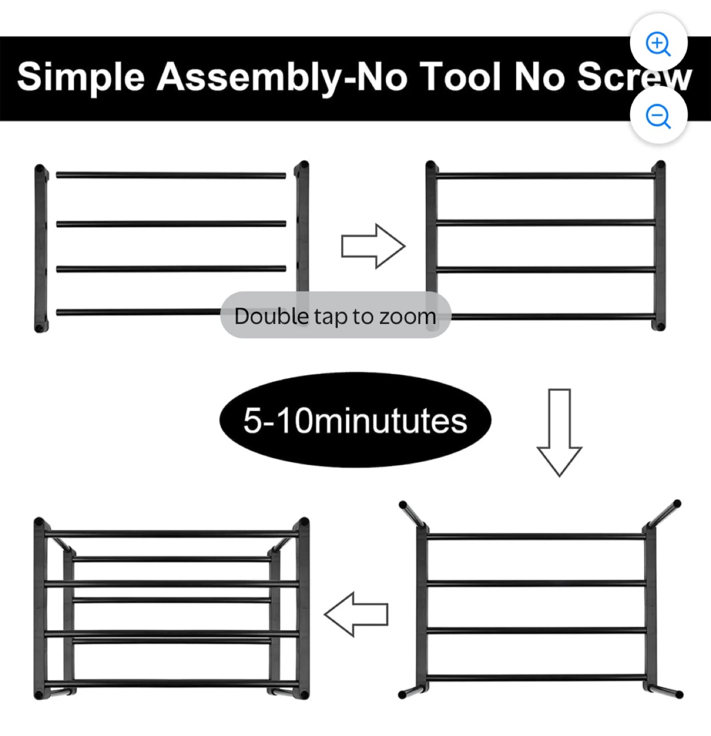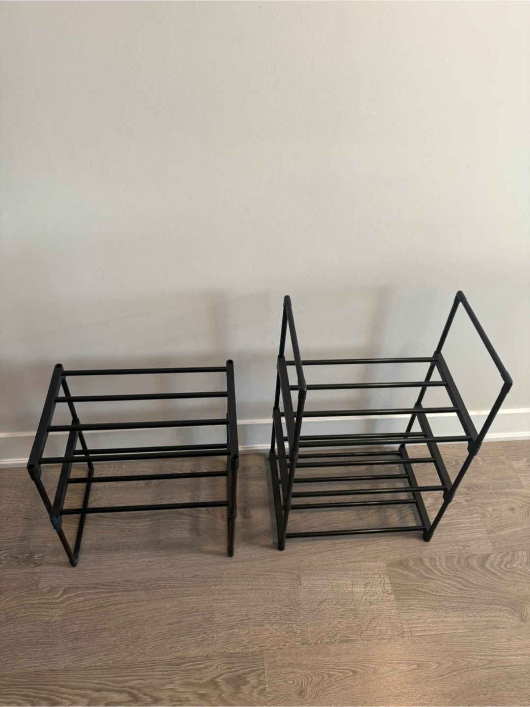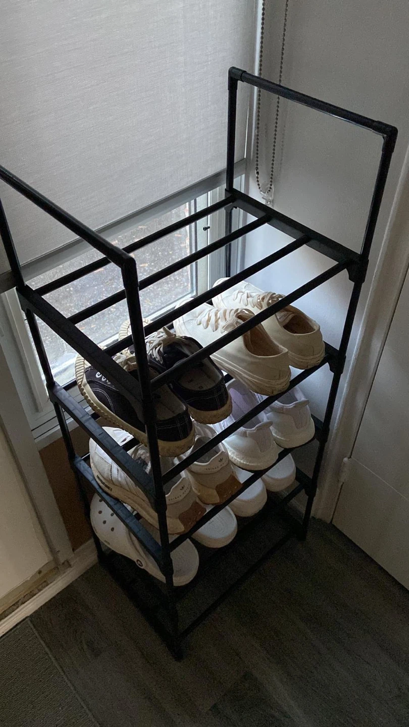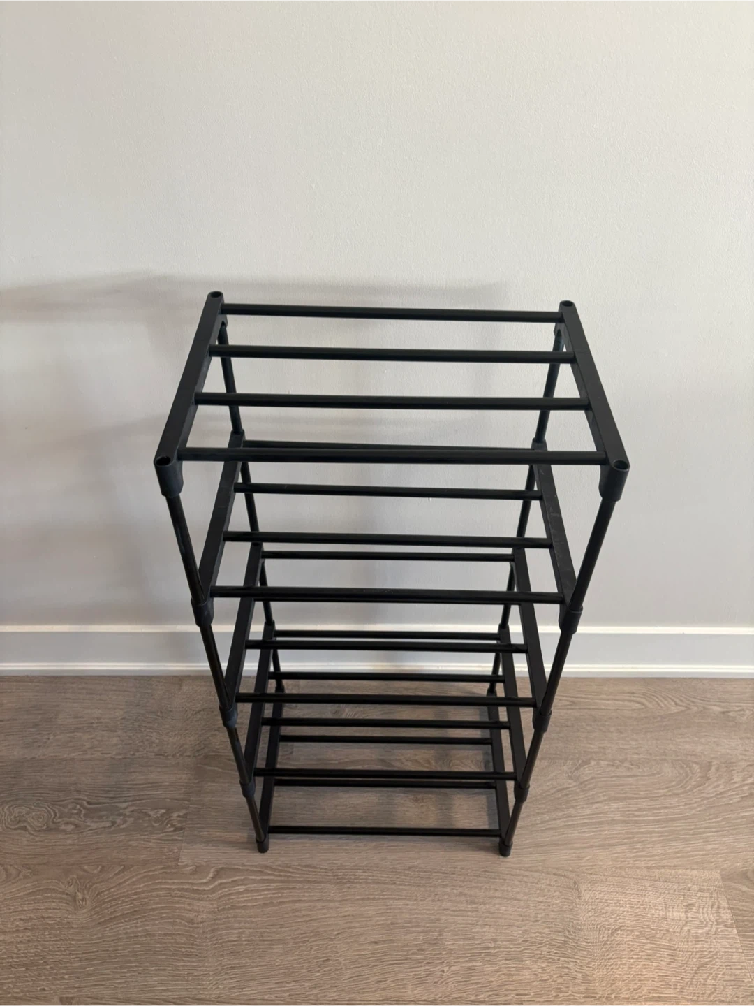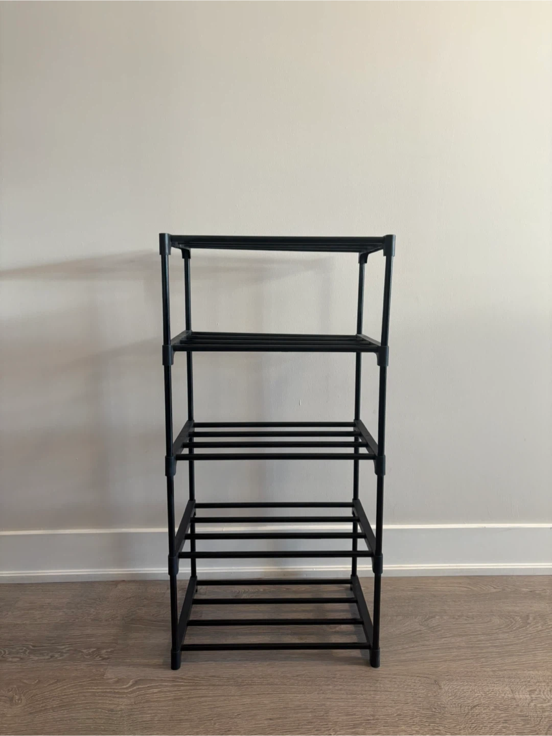 This is a modular shoe rack that you can freely assemble into different tiers. It’s very easy to put together, and I’ve kept it in excellent, clean condition.