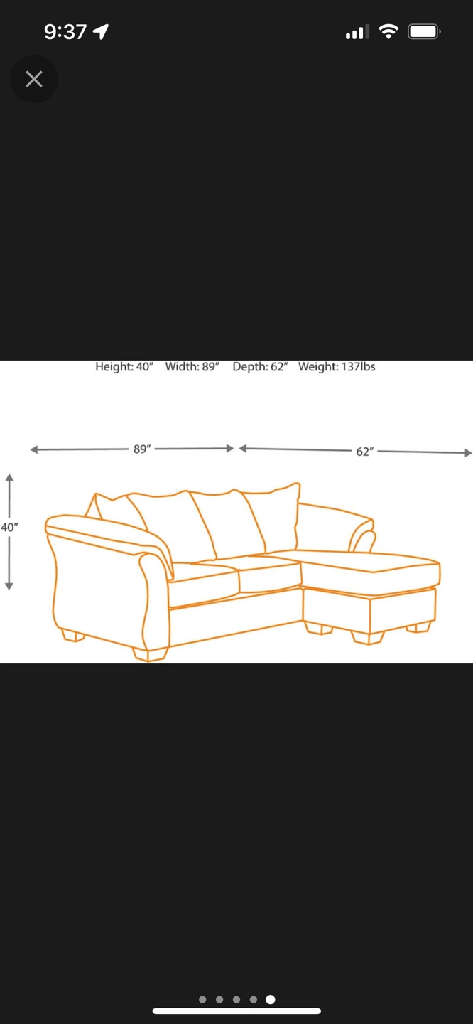 Measures 40" height, 89" width, 62" deep (chaise) - see photo.