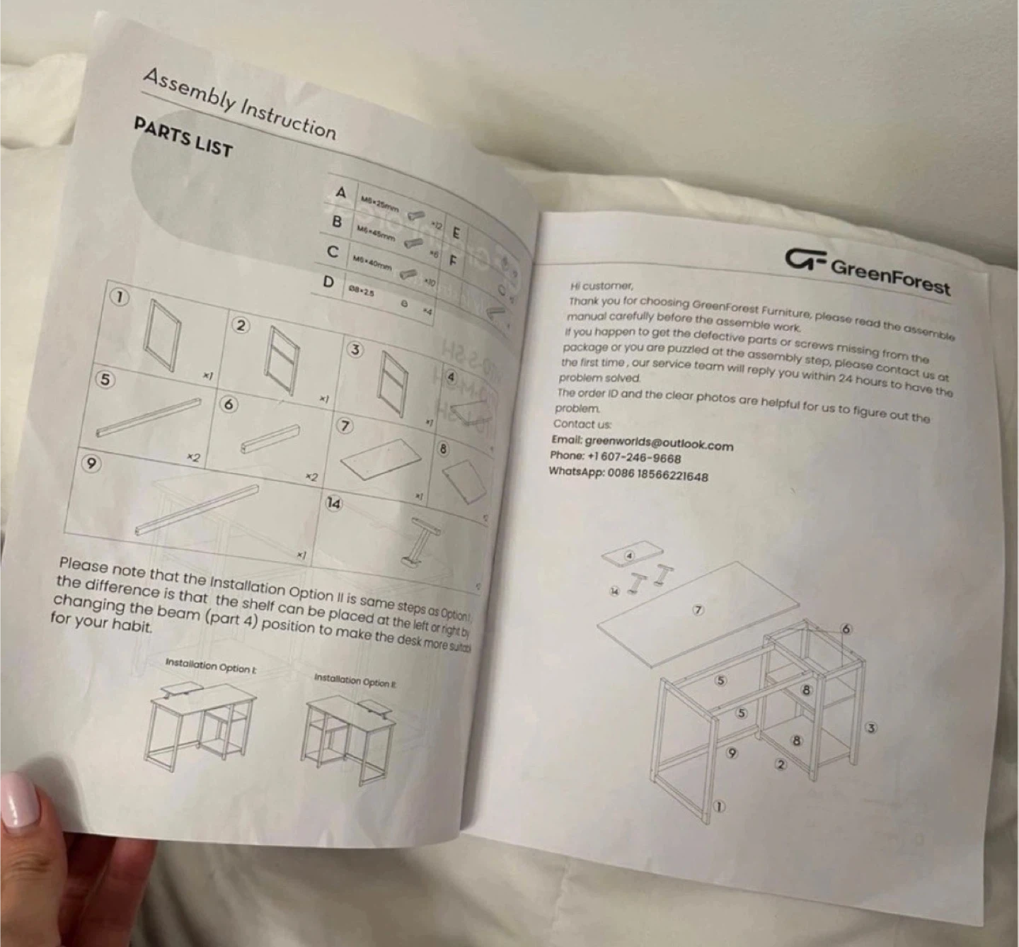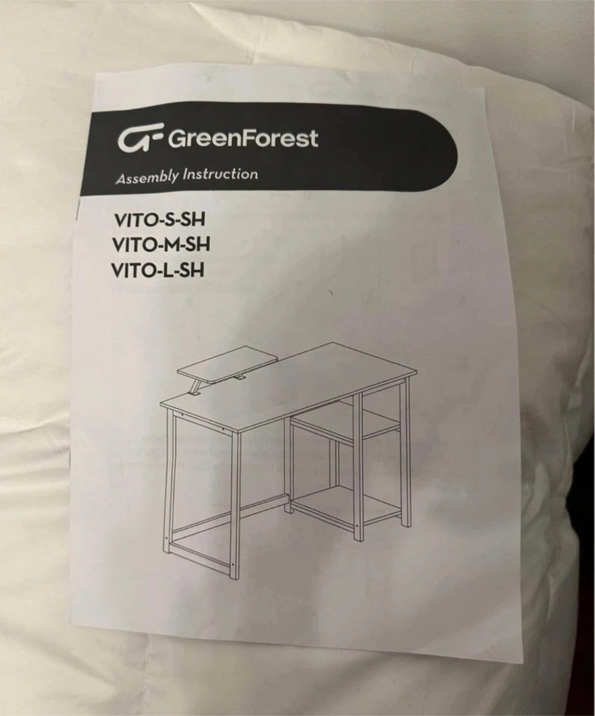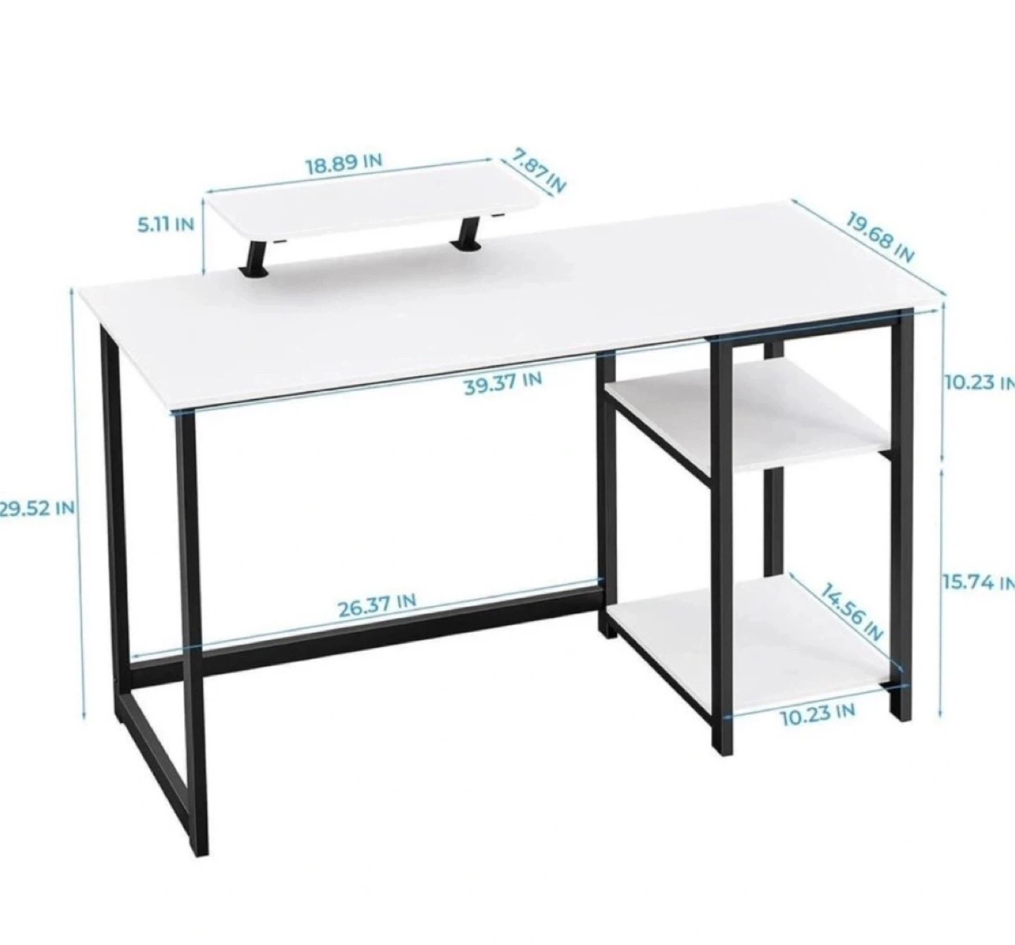 Selling a GreenForest Vito-S-SH desk. It has a sleek design and is perfect for a home office or study space. The desk features a spacious work surface and built-in shelves for storage. The dimensions are approximately 39.37 inches in length, 19.68 inches in height, and 18.89 inches in width.