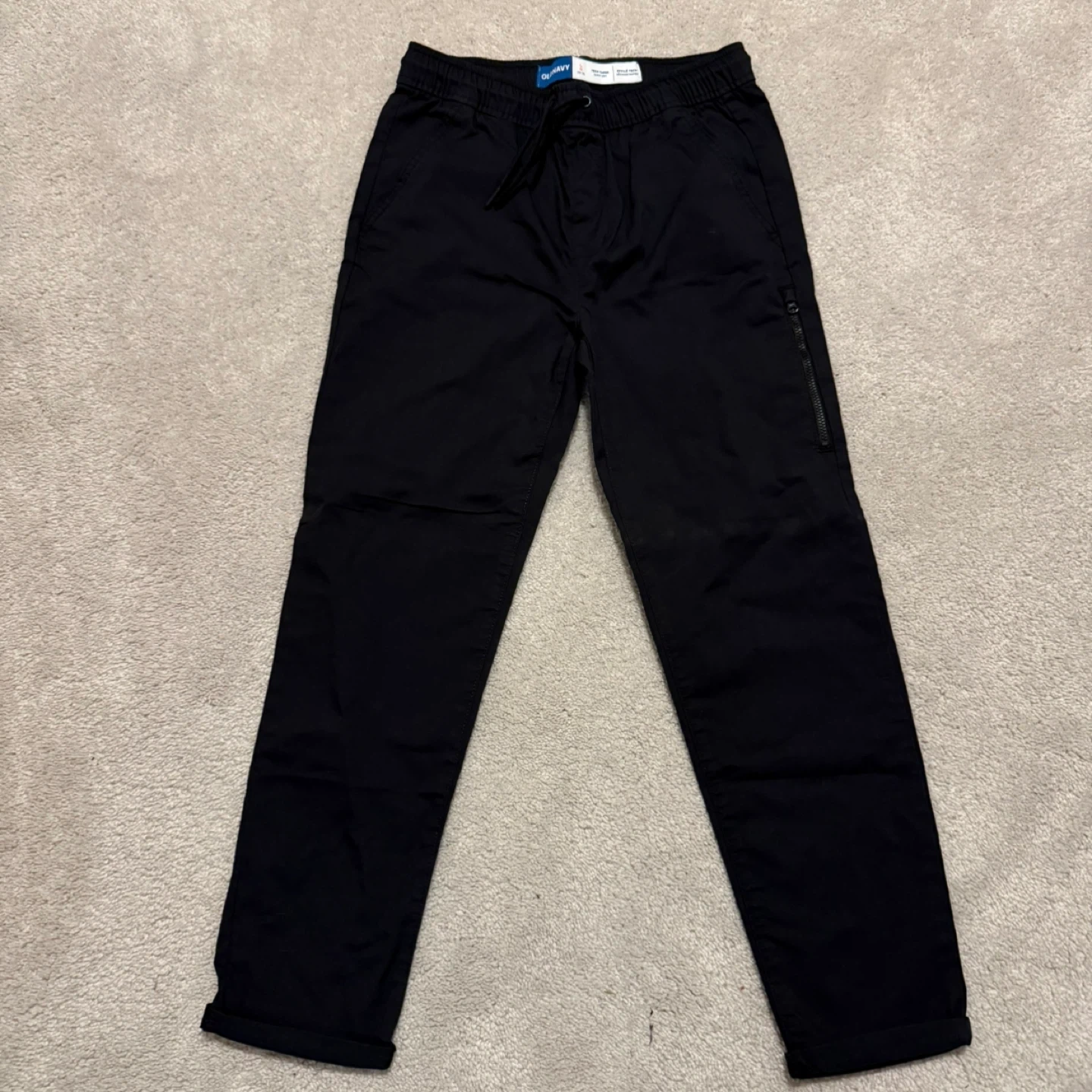 Selling a pair of black Tech Taper Quick Dry size L (10-12)pants from Old Navy! They are in mint condition (never worn) and feature a comfortable elastic waistband with a drawstring. Perfect for casual wear, school or lounging around the house #cleanout