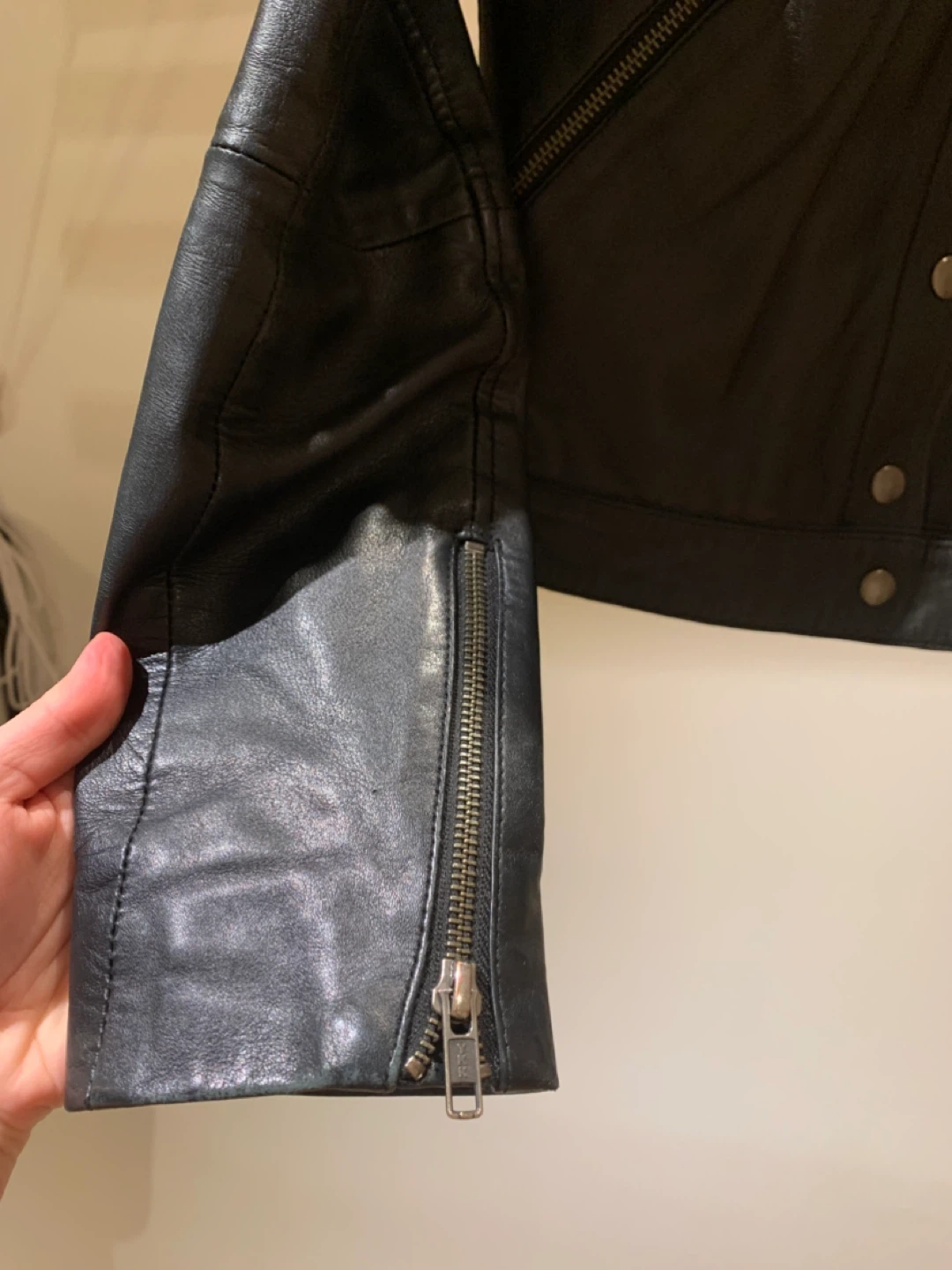 Selling a designer MUUBAA leather moto jacket.