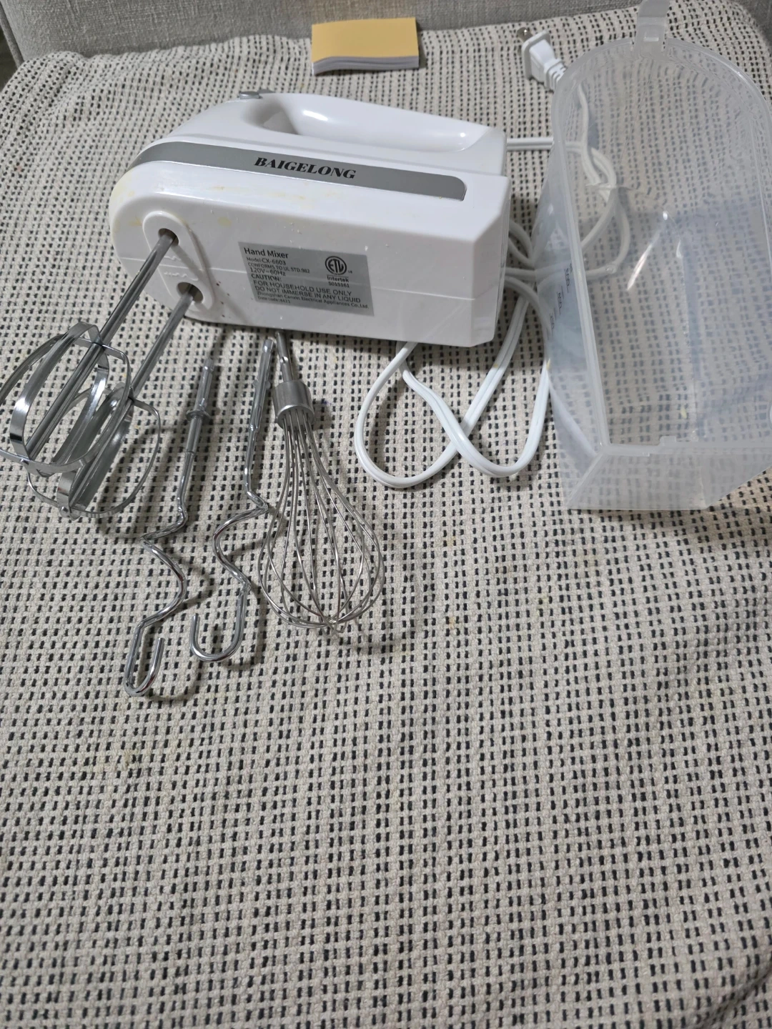 Selling a Baigelong hand mixer, model CX-6603. It's in good condition and ready to help with your baking needs! It comes with all the attachments shown in the pictures.