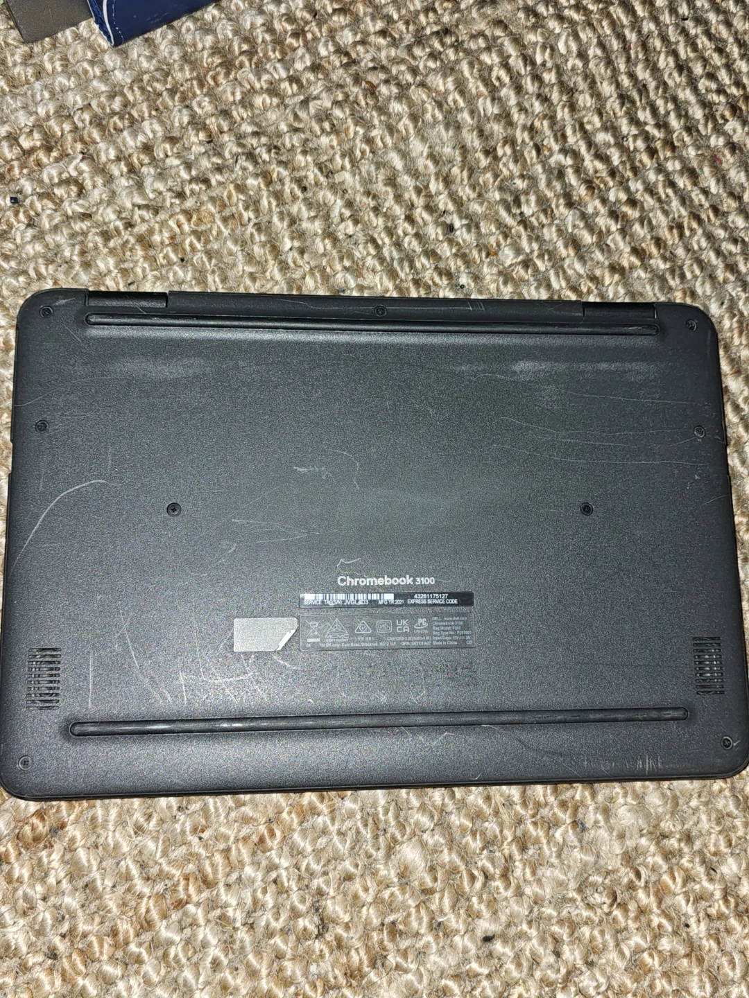 Selling a Dell Chromebook 3100. It has some scratches on the back, but is otherwise in good condition and ready for a new user!