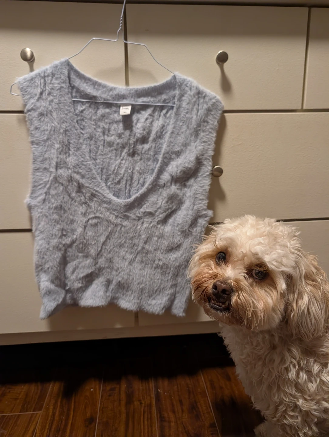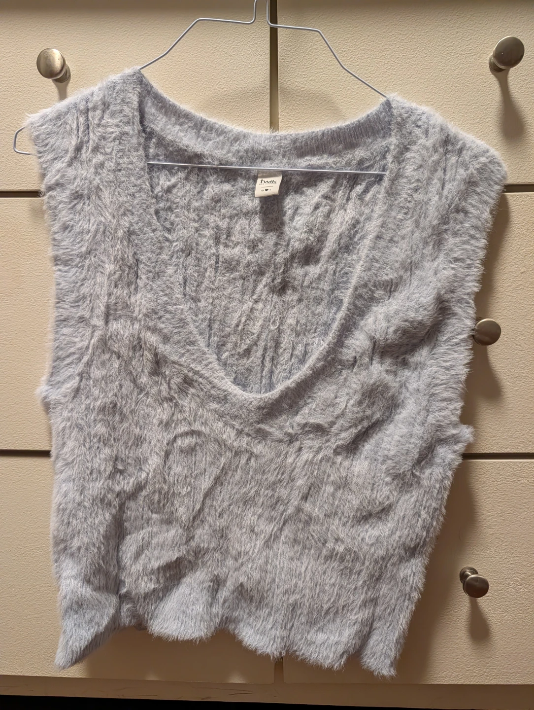 Here's a cozy blue fuzzy sweater vest from Twelfth Thread! It's a size small and would be a great addition to your wardrobe for a touch of warmth and style this winter :)