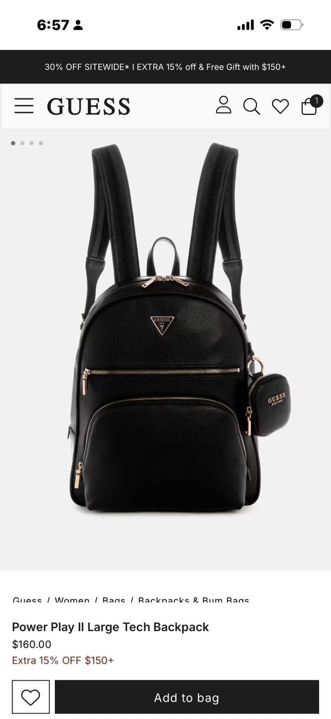 Selling a Guess Power Play II Large Tech Backpack in black. It's in great condition and ready for a new owner! Originally bought for $160.00. Used only once for a trip. So many pockets and storage features including a small wallet that hooks to the side for easy access.