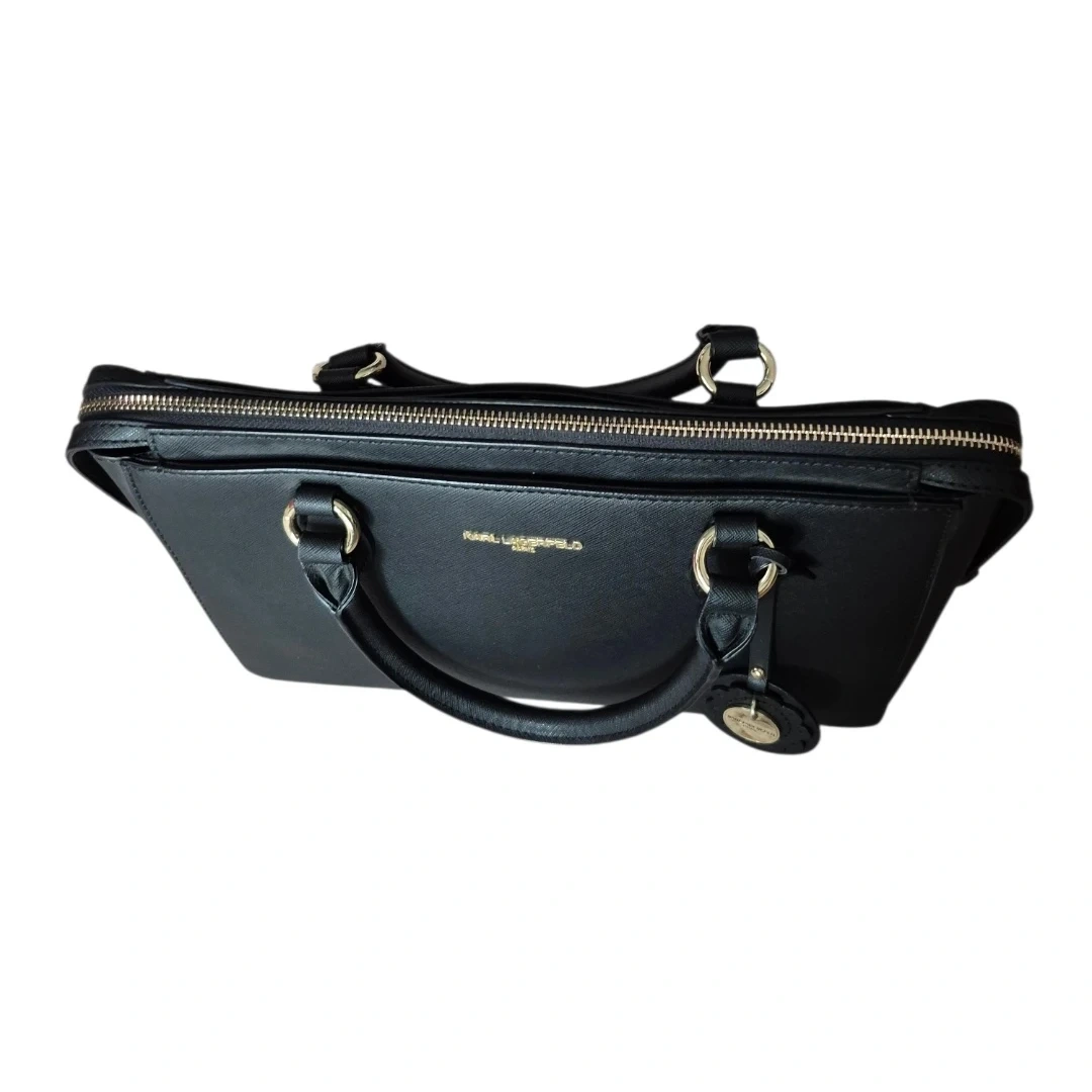 Karl Lagerfeld Black Faux Leather Tote Handbag.