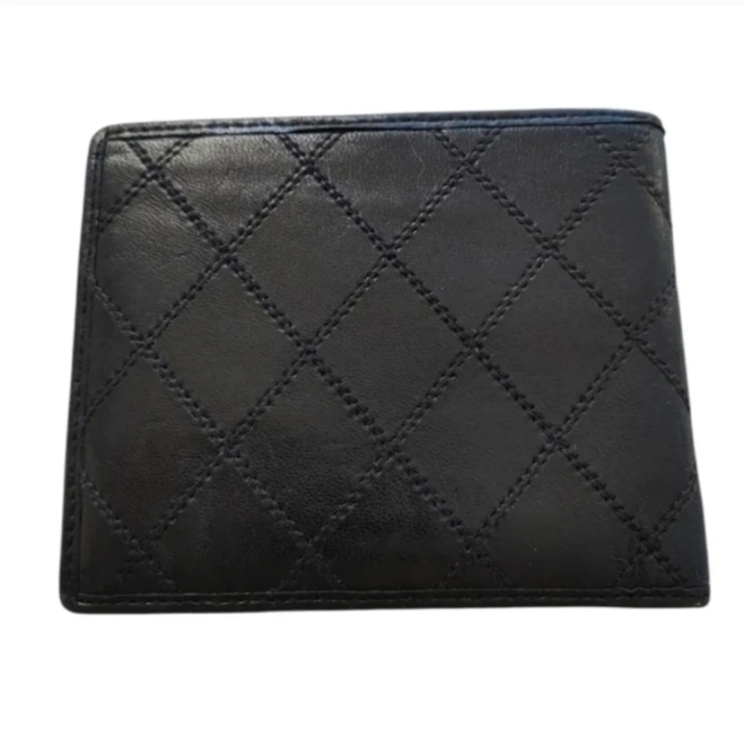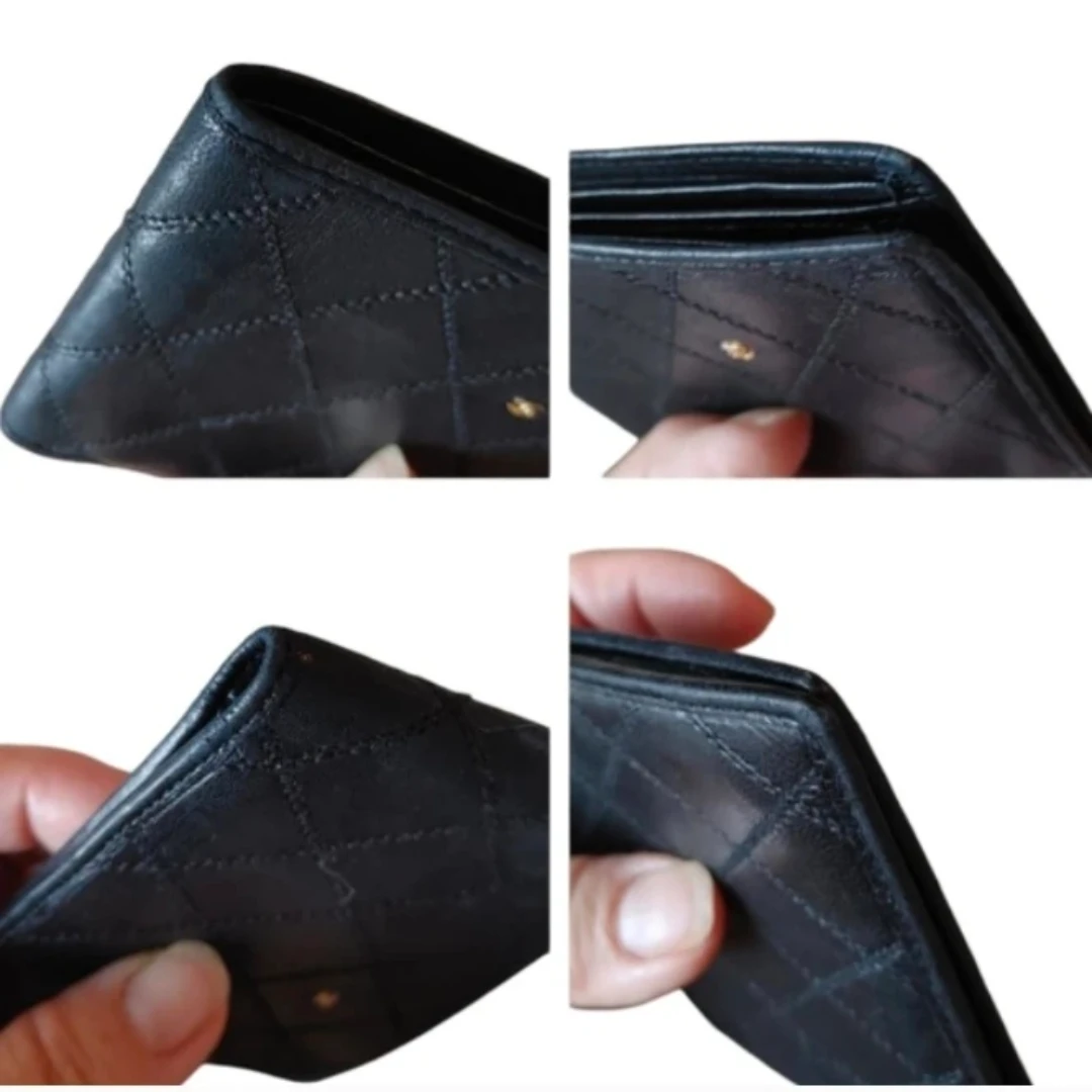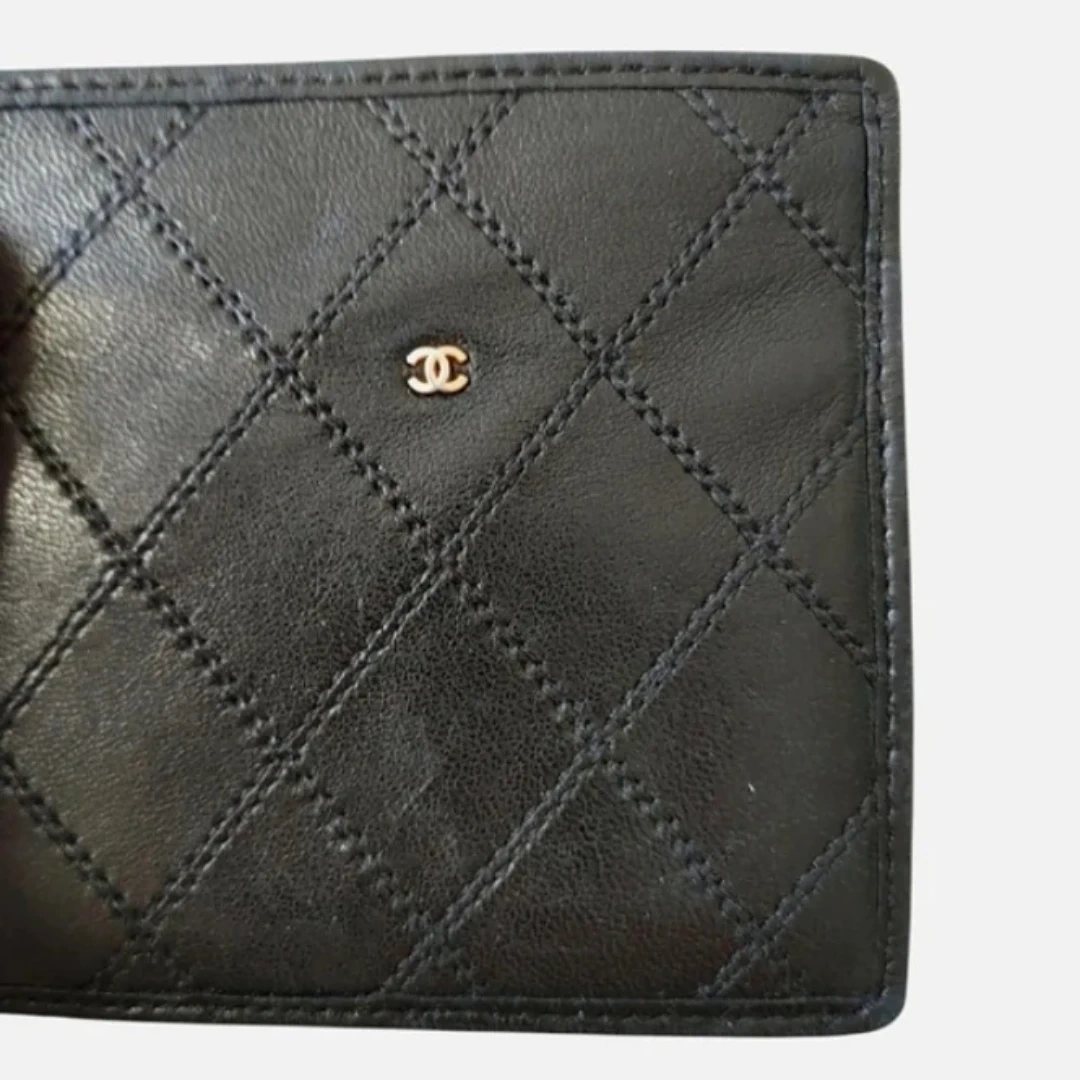 Authentic Chanel Timeless Diamond Black Lambskin Leather Bifold Wallet.
