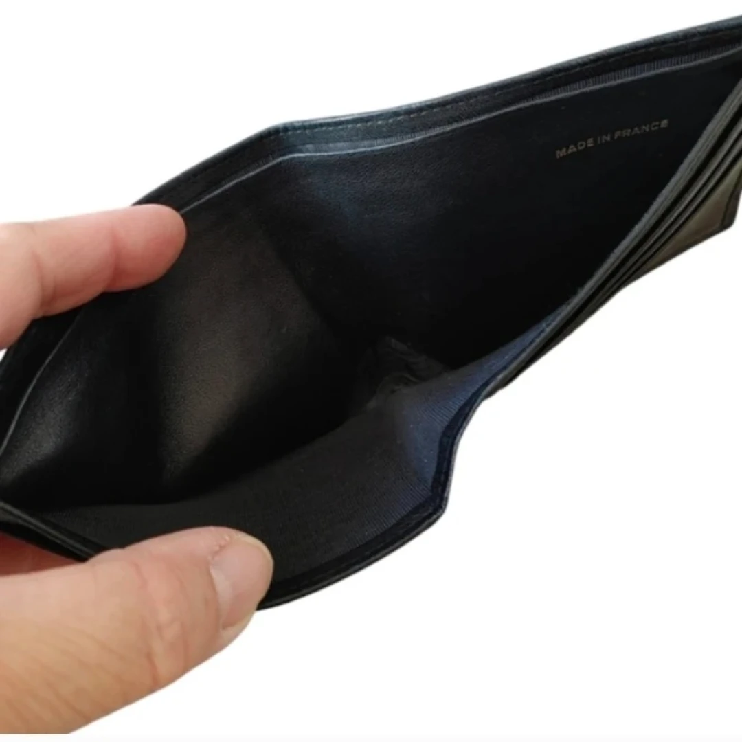 Features: Elegant double stitched. Card pockets and bill slots. Gold hardware. Made in France. Lambskin leather.