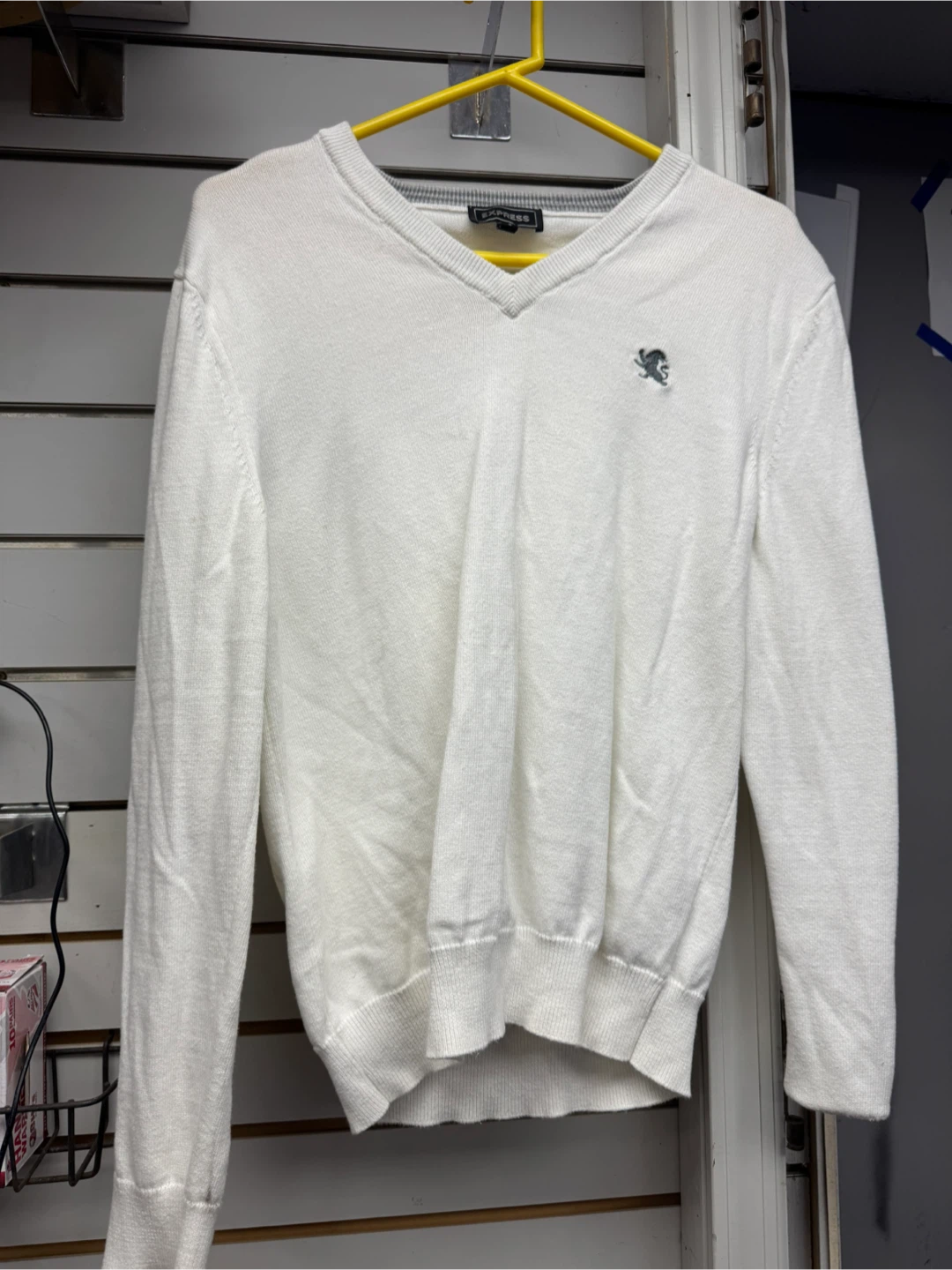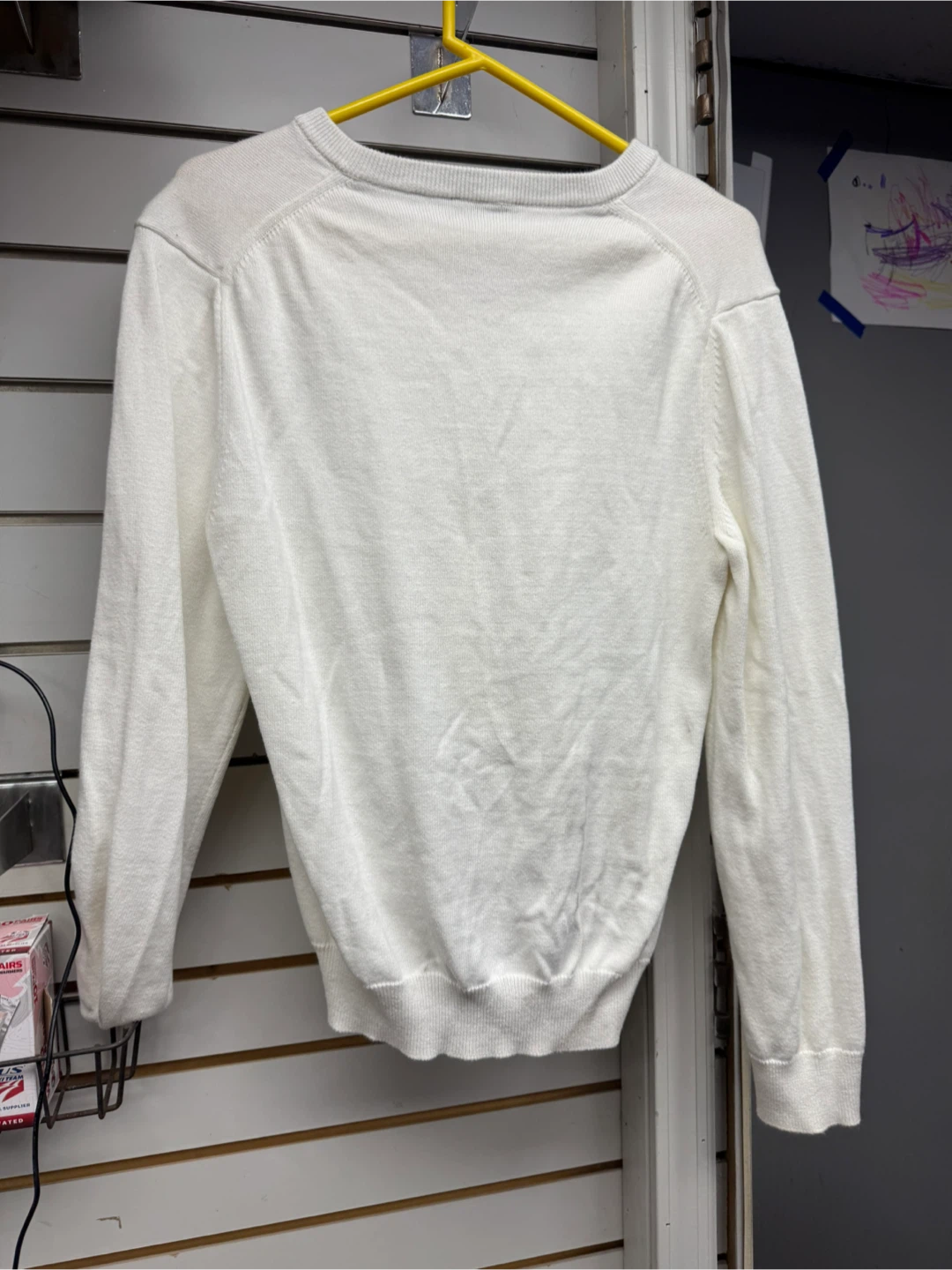 Selling a gently used Express V-neck sweater in size medium! It's a classic and comfortable piece that's easy to dress up or down. Perfect for layering or wearing on its own. The color is a versatile white, and it's in great condition.