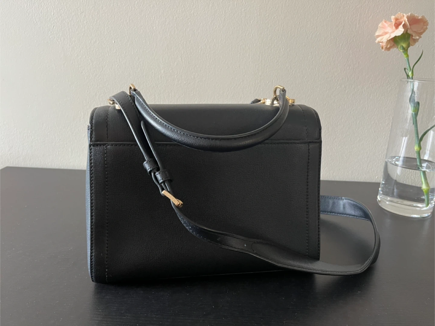 Selling a stylish Michael Kors satchel in black leather. It's in excellent condition and perfect for everyday use or a night out. The bag features a structured design with a top handle and a detachable shoulder strap. A classic addition to any wardrobe!