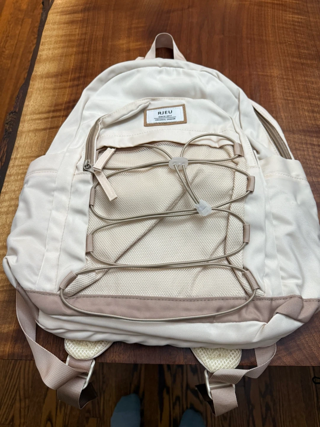 Popular zipper + practical drawstring. The heavy duty fabrics are water-repellent, dirt-resistant and easy to care for. Strong padded shoulder strap provides relief when carrying heavier loads. Side pockets for water bottle with elastics.