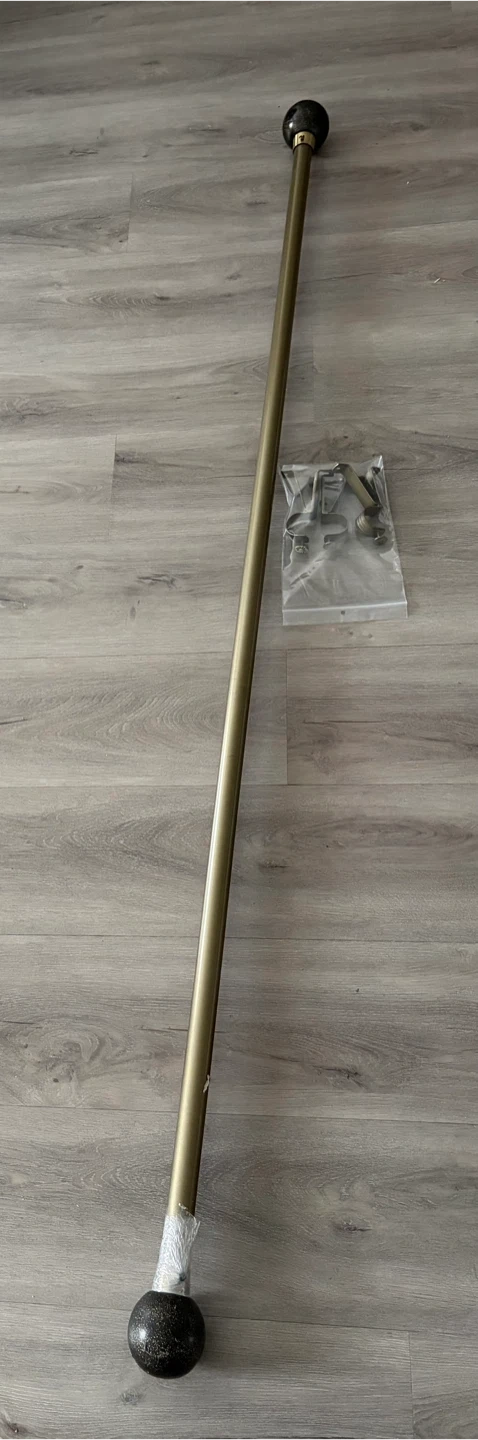 Selling a gold-coloured curtain rod. It comes with the mounting hardware . Perfect for adding a touch of elegance to any room!