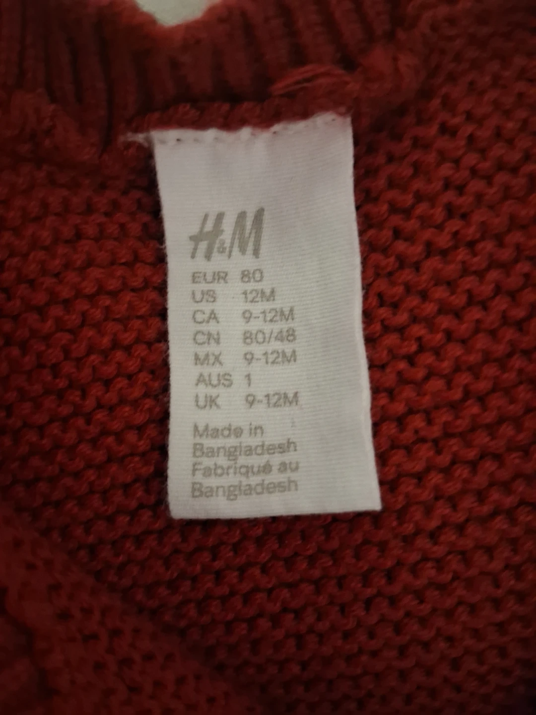 Selling a cute H&M knit romper for boy in size 9-12 months. It's a lovely red colour and in great condition. Perfect for keeping your little one cozy!