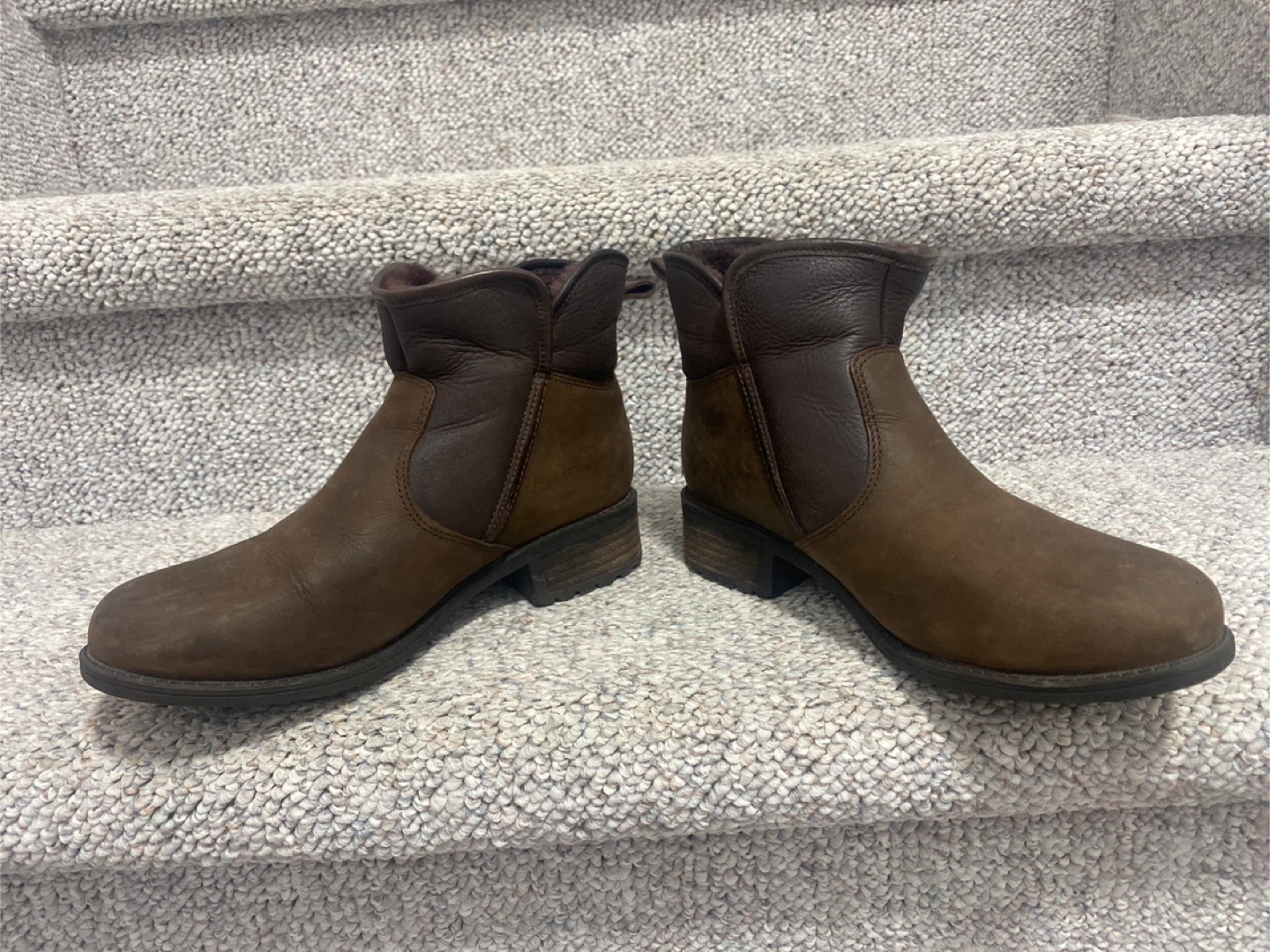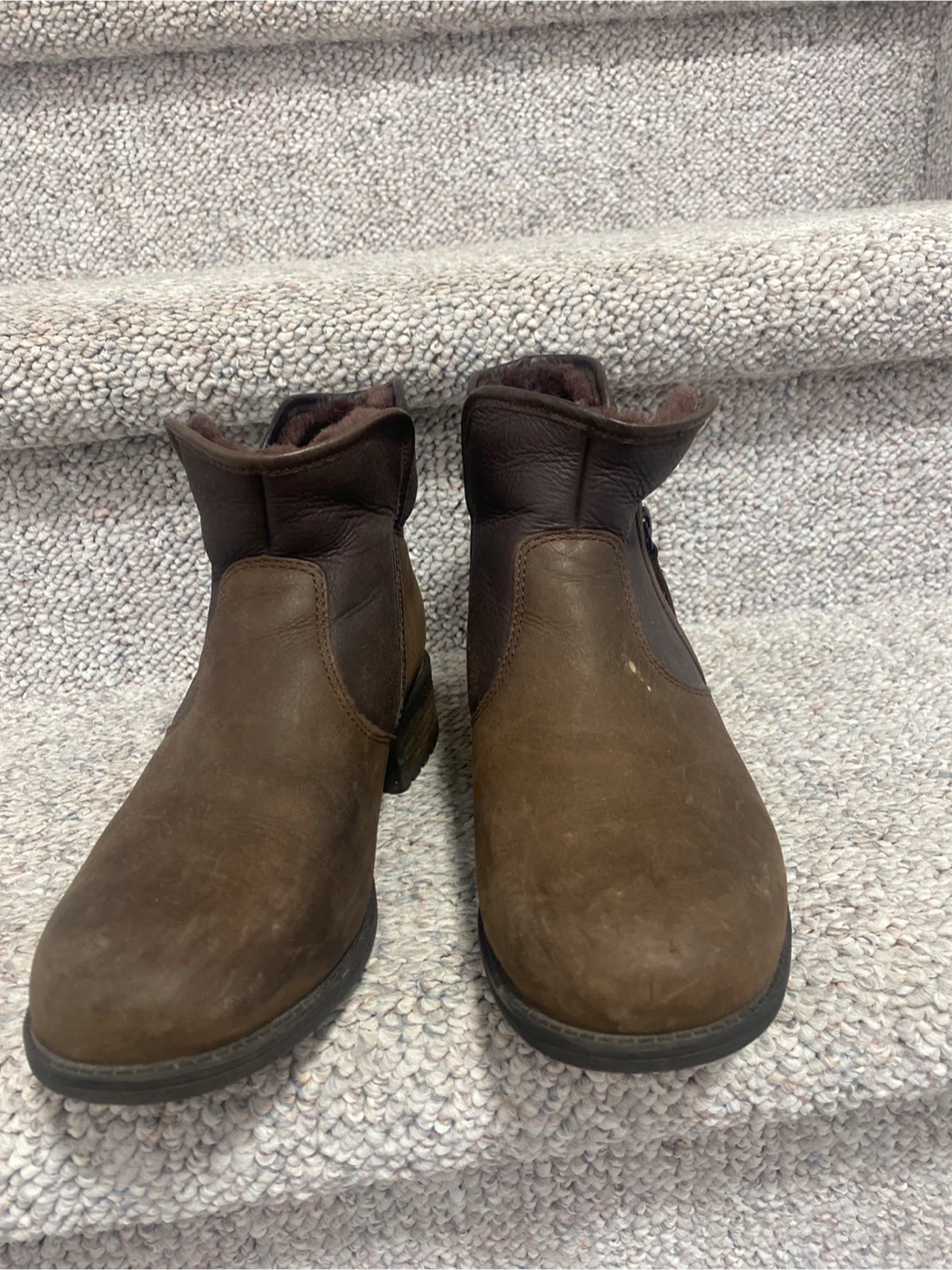 These Blondo ankle boots are perfect for everyday wear! They're a stylish brown leather and waterproof, so you don't have to worry about the weather. They show some signs of wear. Size 7 pick up cash only