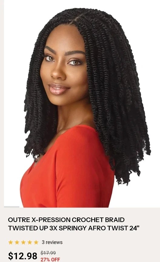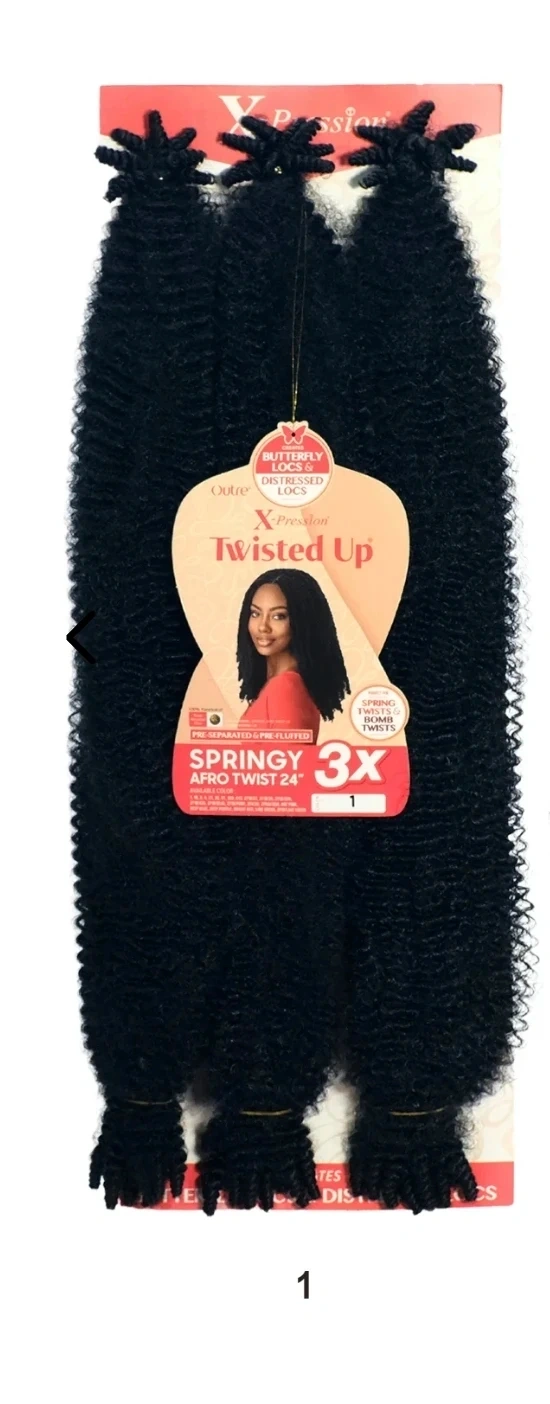 3 packs of Outre Springy Afro Twist hair for sale. 24 inches.