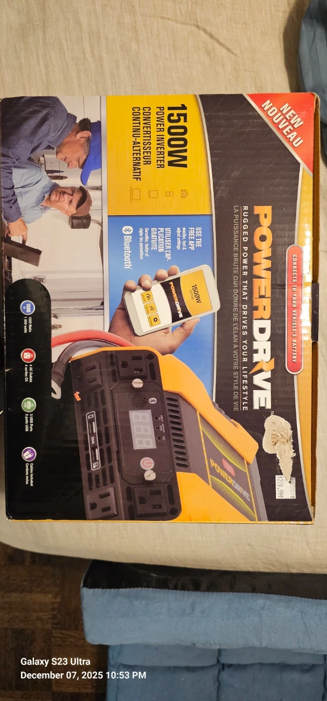 Selling a brand new Powerdrive PD1500 1500W power inverter! It's still in the box and ready to go. Rugged power that fits your lifestyle. Includes the owner's guide and all components that originally came with it