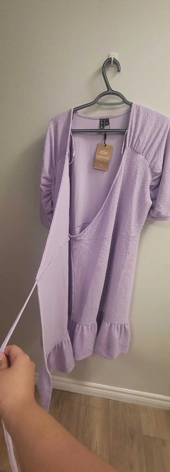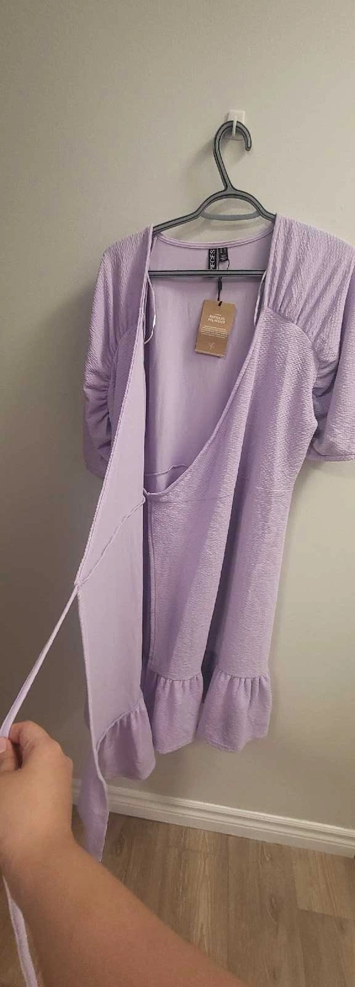 This is a brand new dress in a beautiful lilac colour, perfect for a night out or a special occasion. The dress features a flattering wrap design and a stylish ruffle hem. It's brand new with tags, never been worn! Features: * Brand: Pieces * Colour: Lilac * Style: Wrap dress with ruffle hem * Condition: New with tags Looking for a new home! Remember, if you see this ad, it's still available!