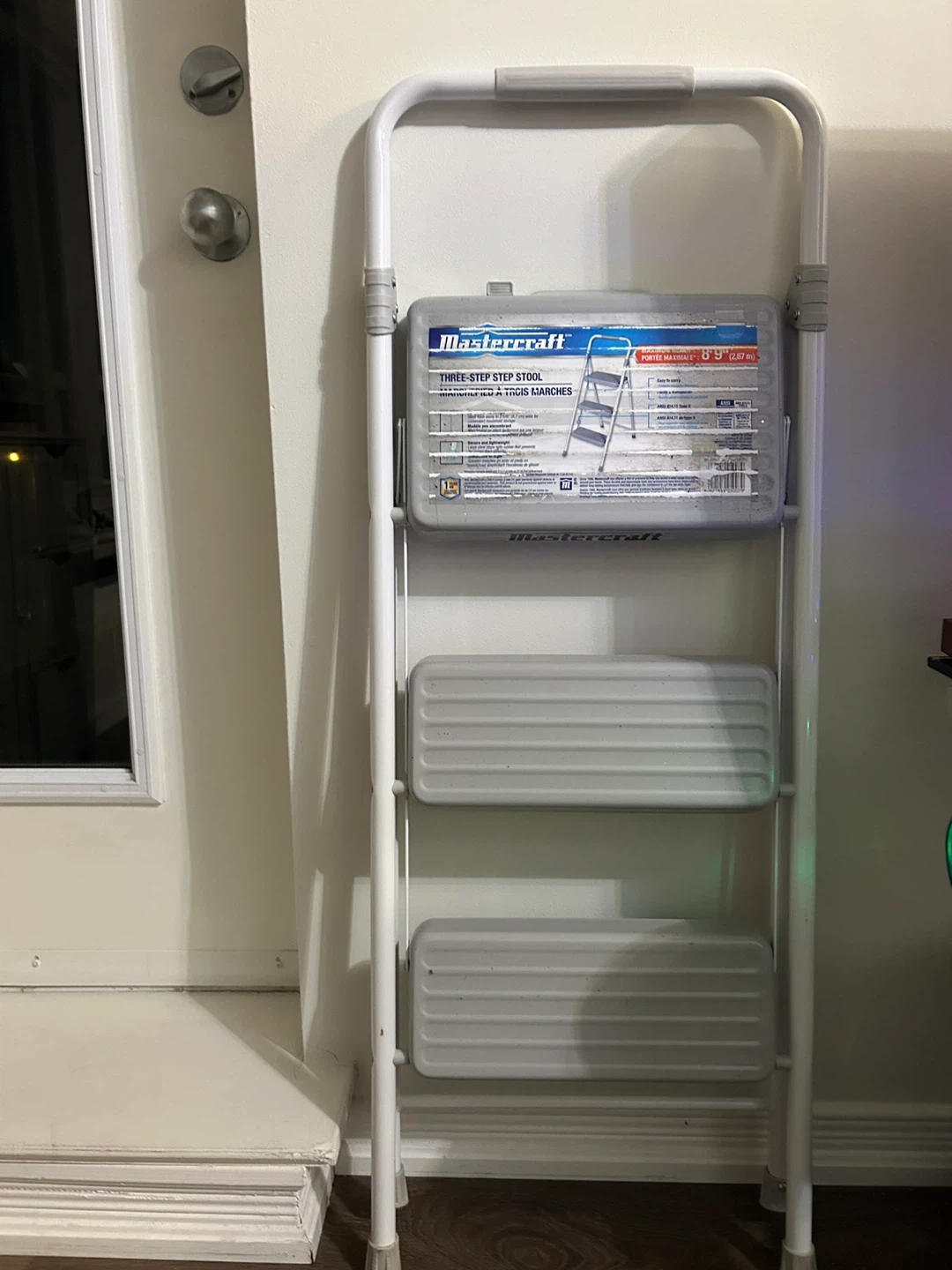 Selling a Mastercraft three-step step stool! It's lightweight and easy to carry around the house. Perfect for reaching those high shelves or doing some light home repairs.