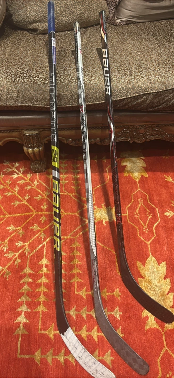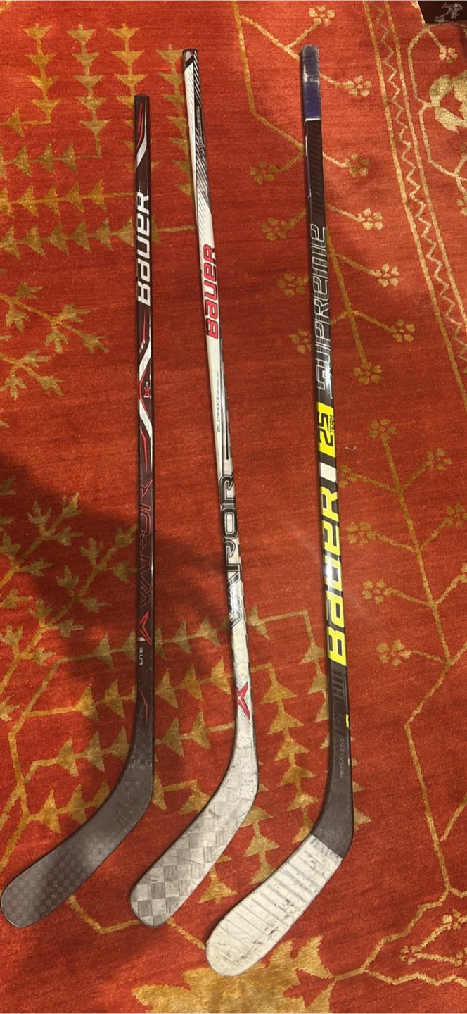 Selling three Bauer hockey sticks: a Supreme, a Vapor, and a Nexus. All are in used condition but still have lots of life left for some ice time!