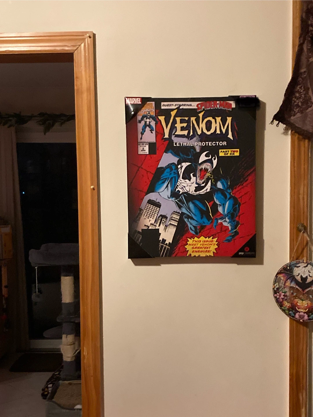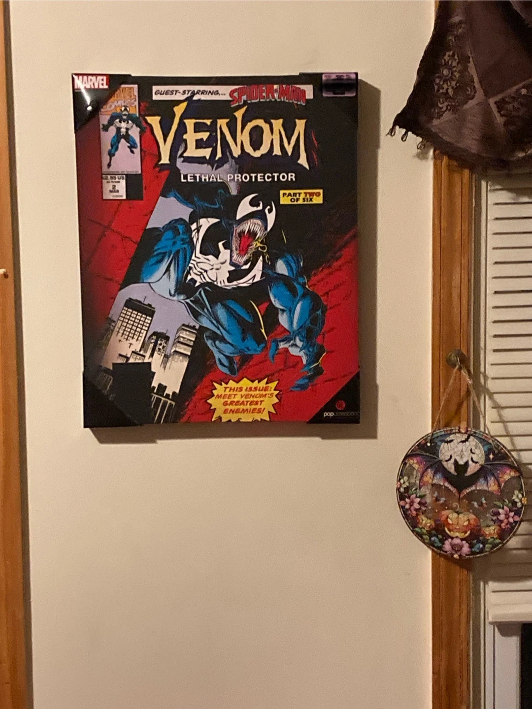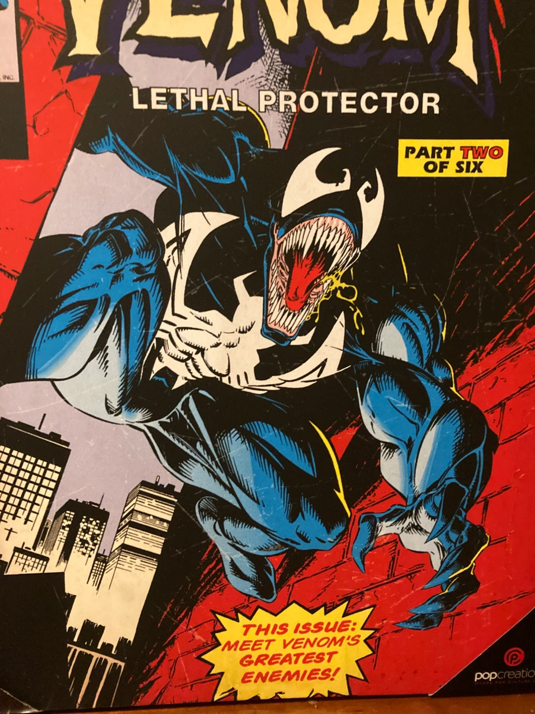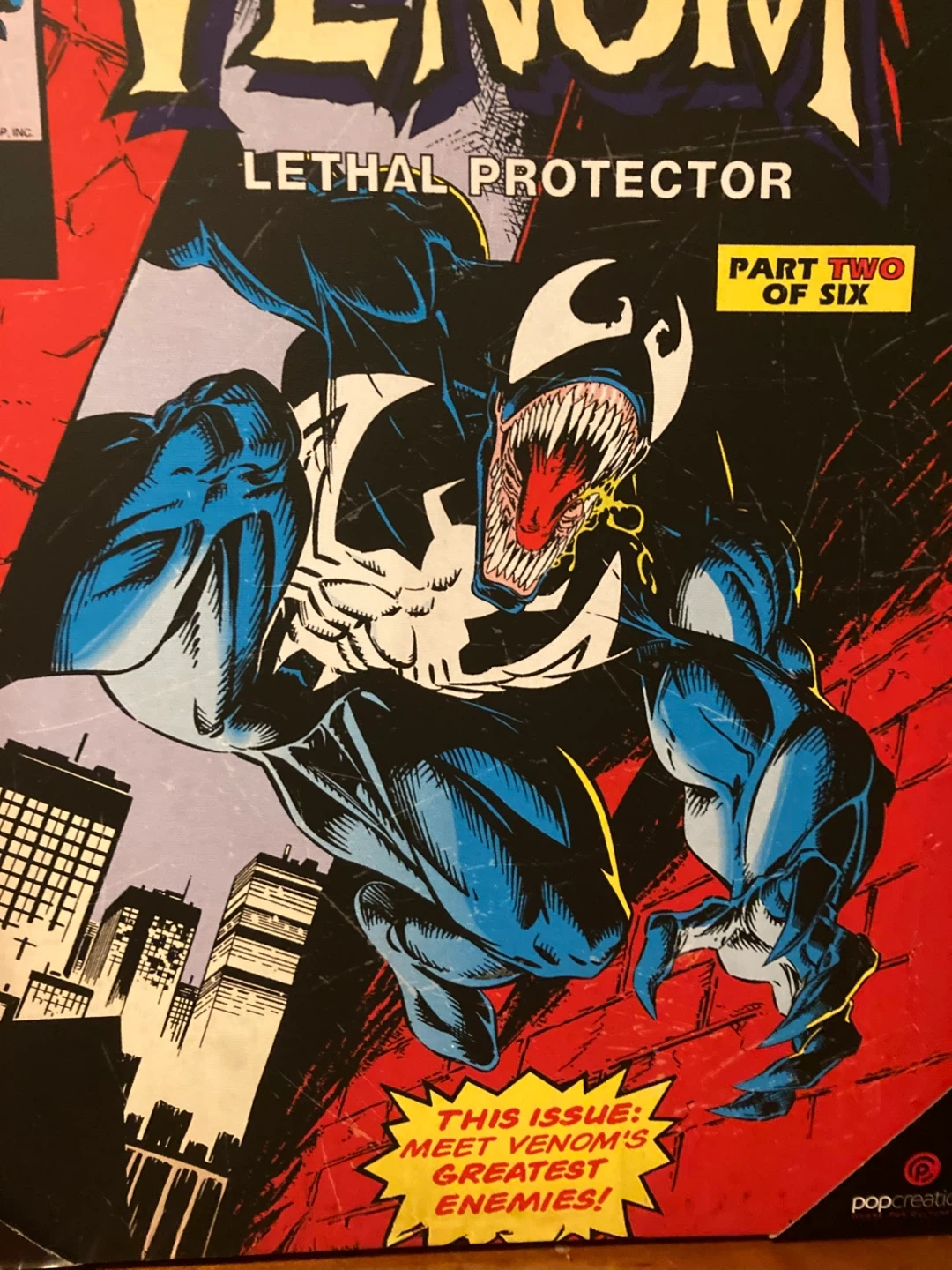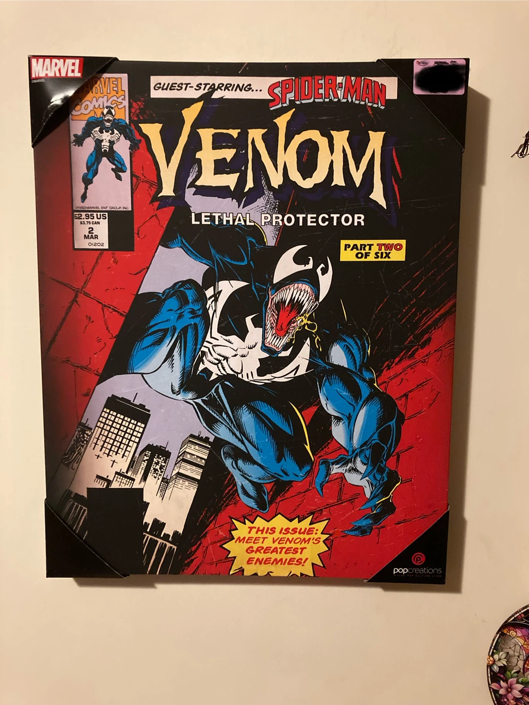 Selling a Venom Lethal Protector wall art piece! It features the iconic comic book cover with Venom and Spider-Man. This is part two of six.