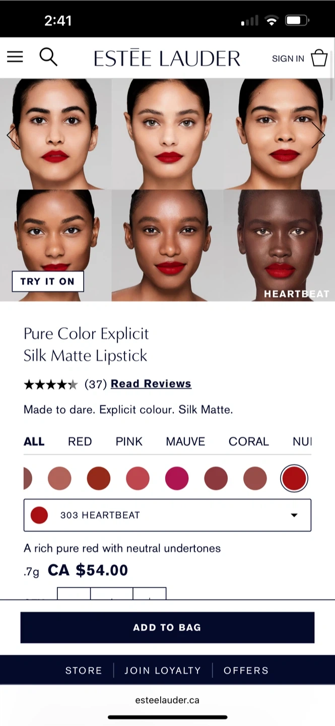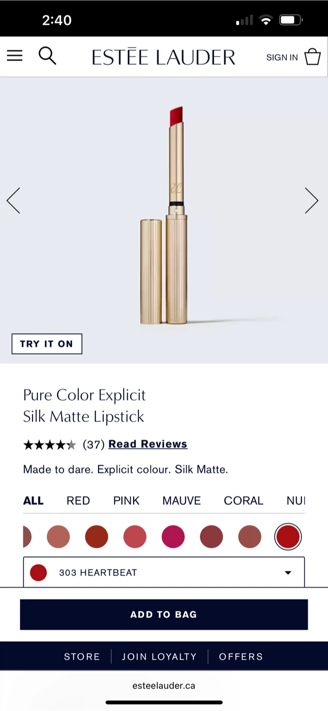 Selling an Estee Lauder Pure Color Explicit Silk Matte Lipstick in the shade Heartbeat. It's a rich pure red with neutral undertones.