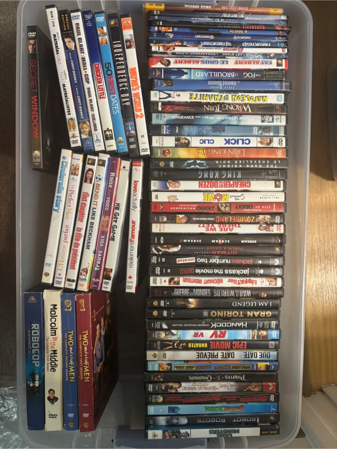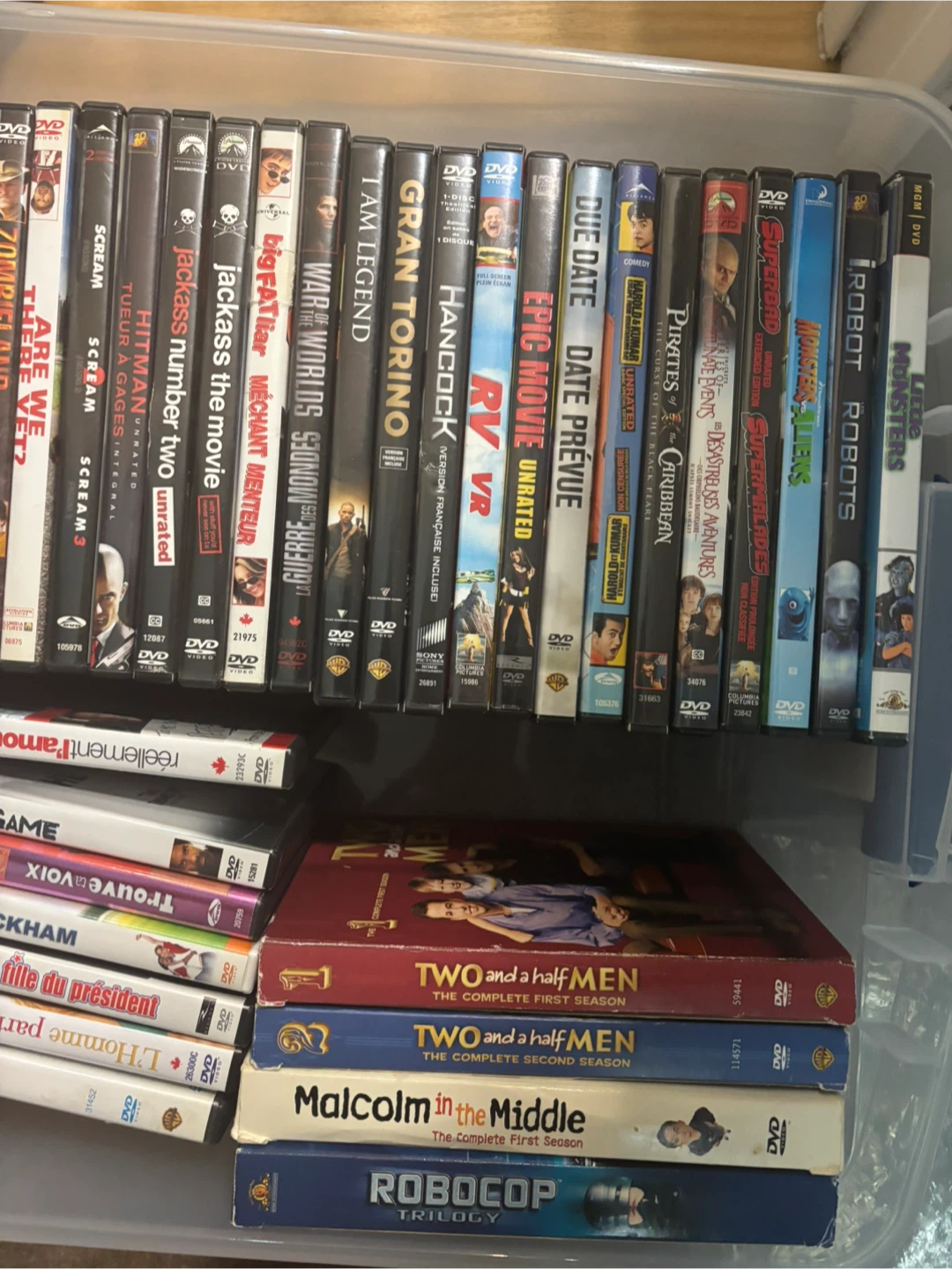 Selling a collection of DVDs including various movies and TV shows. Titles include Robocop Trilogy, Malcolm in the Middle, Two and a Half Men, and many more! Great for a movie night or expanding your collection