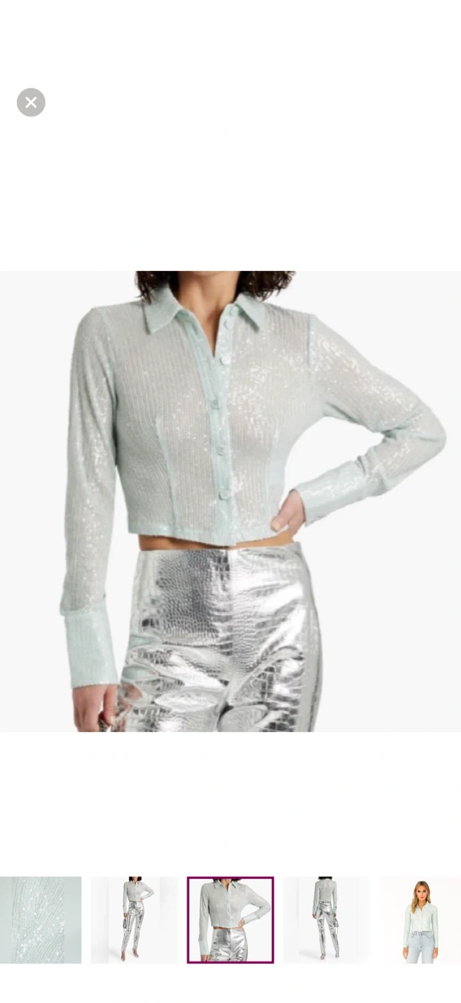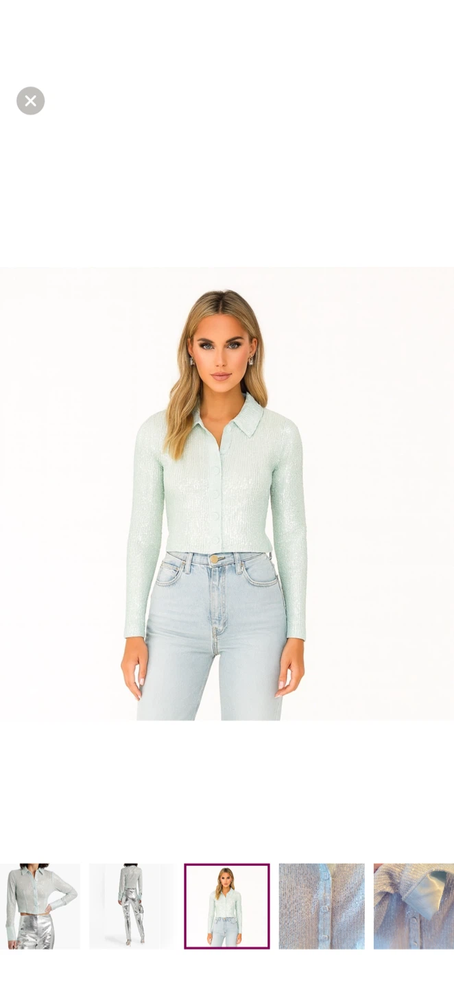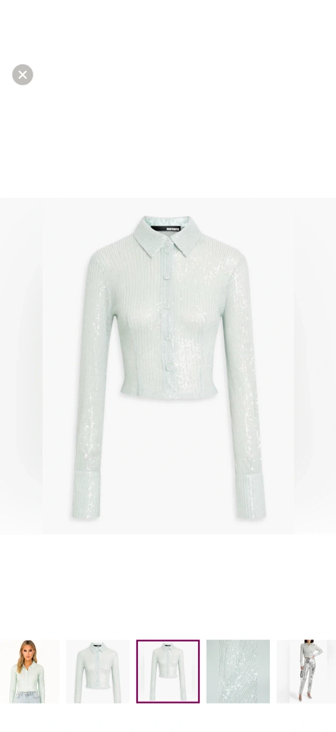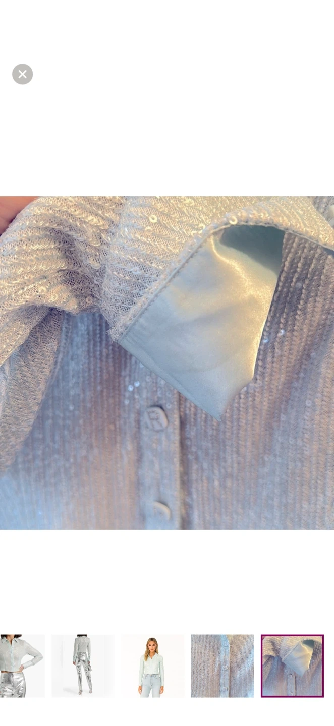 Shimmer in style with this elegant light blue sequin top. Perfect for any occasion, this top adds a touch of sparkle to your wardrobe.