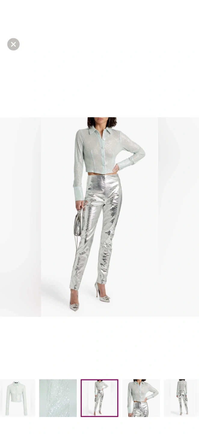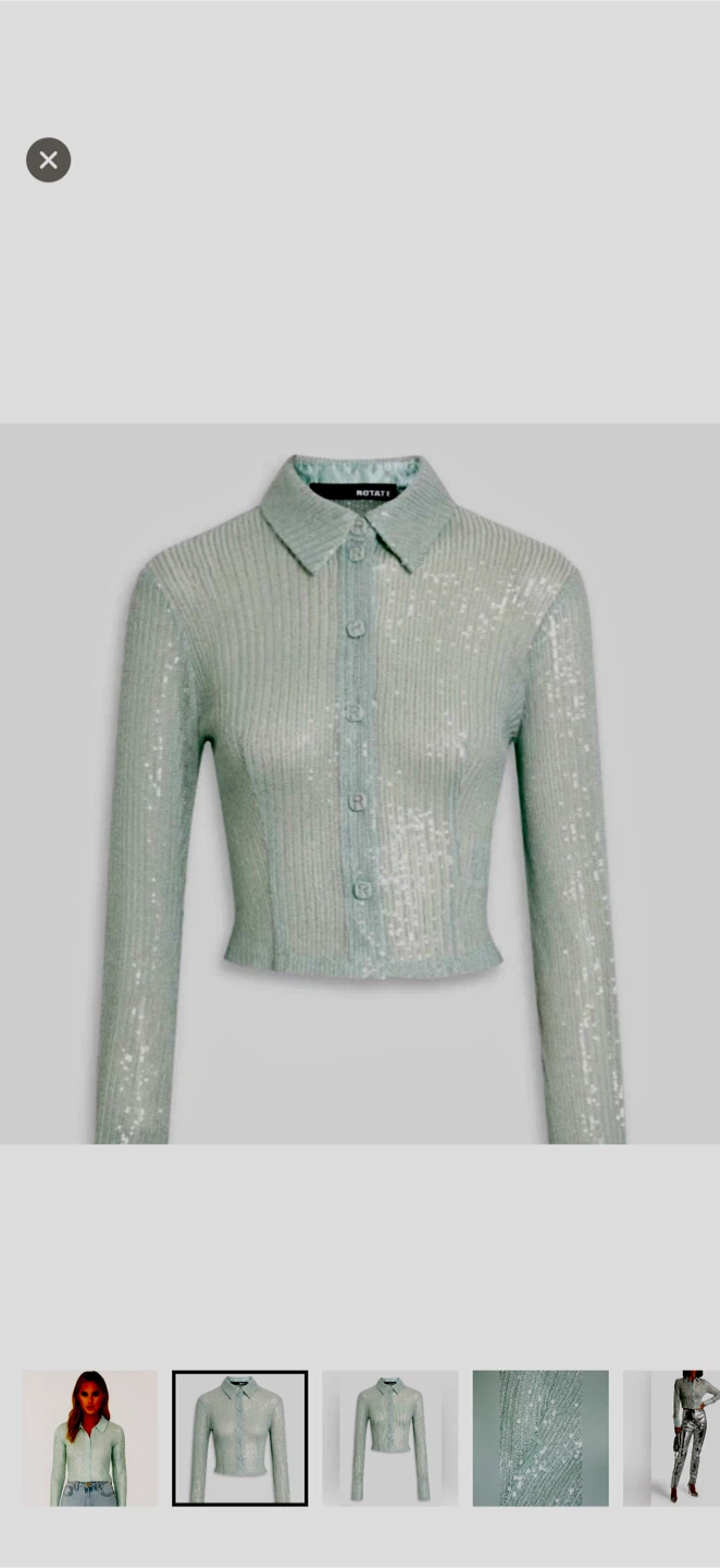 ROTATE BIRGER CHRISTENSEN Nude Blue Sequin Collared Blouse