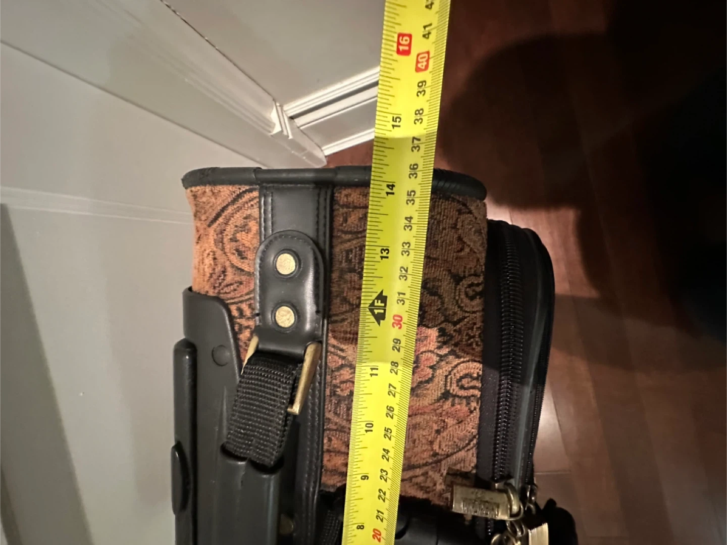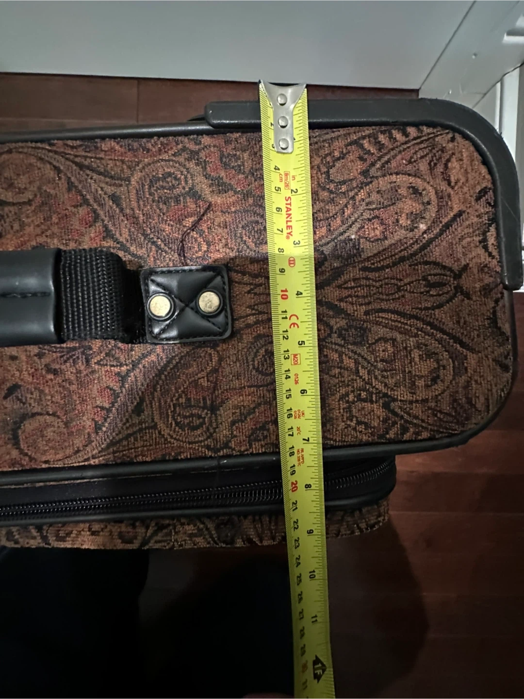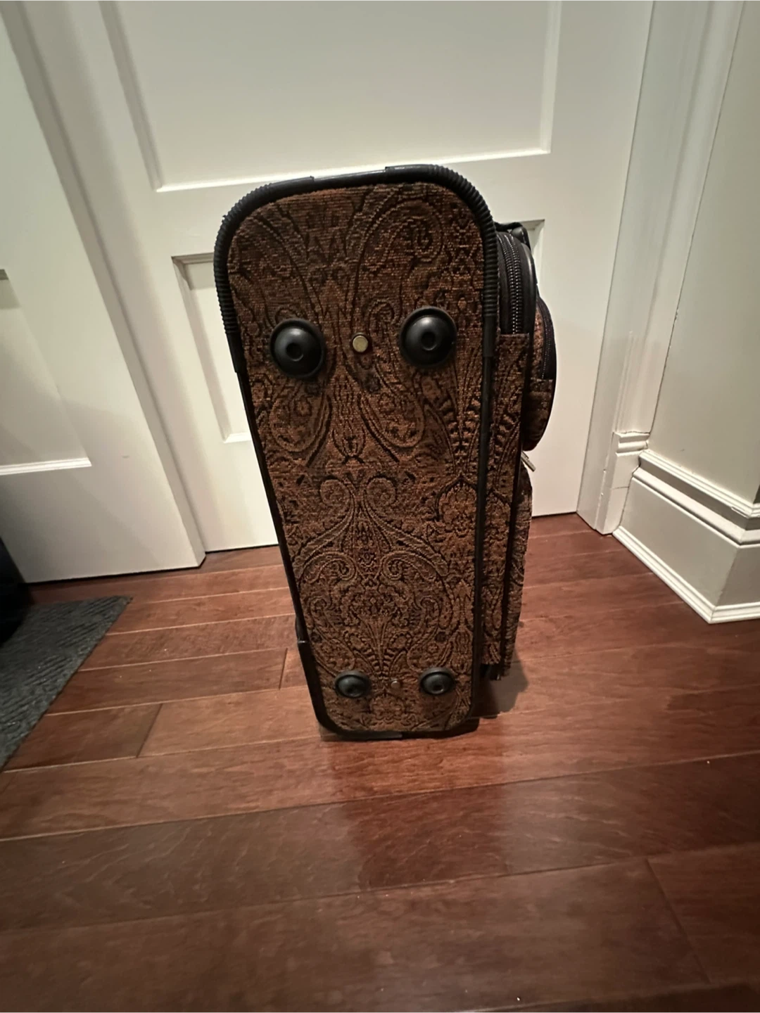 Carry-on luggage. Comes from a pet free and smoke free home.