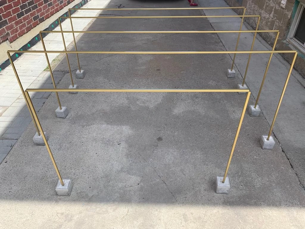 Selling these 5 Stands/units available, 4 of them are 7ft x 3ft - $60 each and 1 unit is 4 ft x 3ft. - $40. These are great for any sort of parties and makes table decor. The base is made from concrete and the gold bars can be disassembled for easy transport. Flowers and candle bulbs are not included. Additional $30 per unit for the flowers and bulbs. Bundle discounts available if you purchase all.