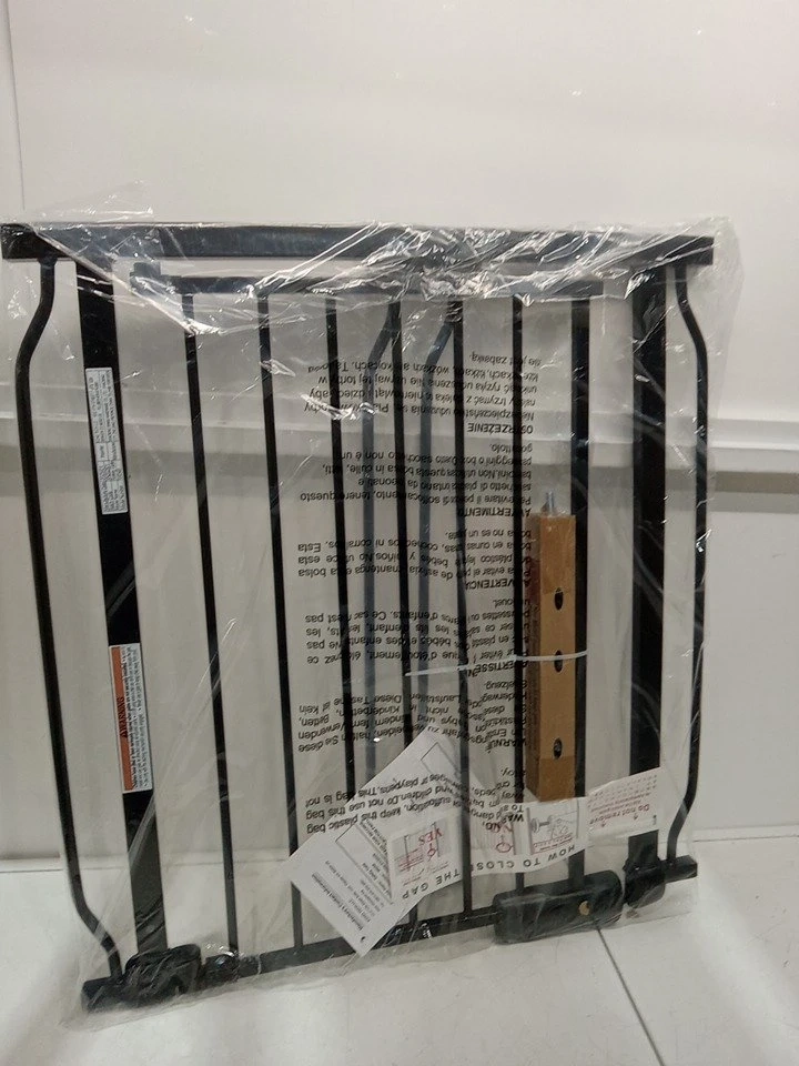Keep your little ones safe with this WAOWAO baby safety gate, designed to fit openings 86-96 cm wide! It is made with carbon steel and ABS/Nylon. This gate is pressure mounted, auto-close, and features a walk-thru door. This item is new, unused and still sealed in the original packaging.