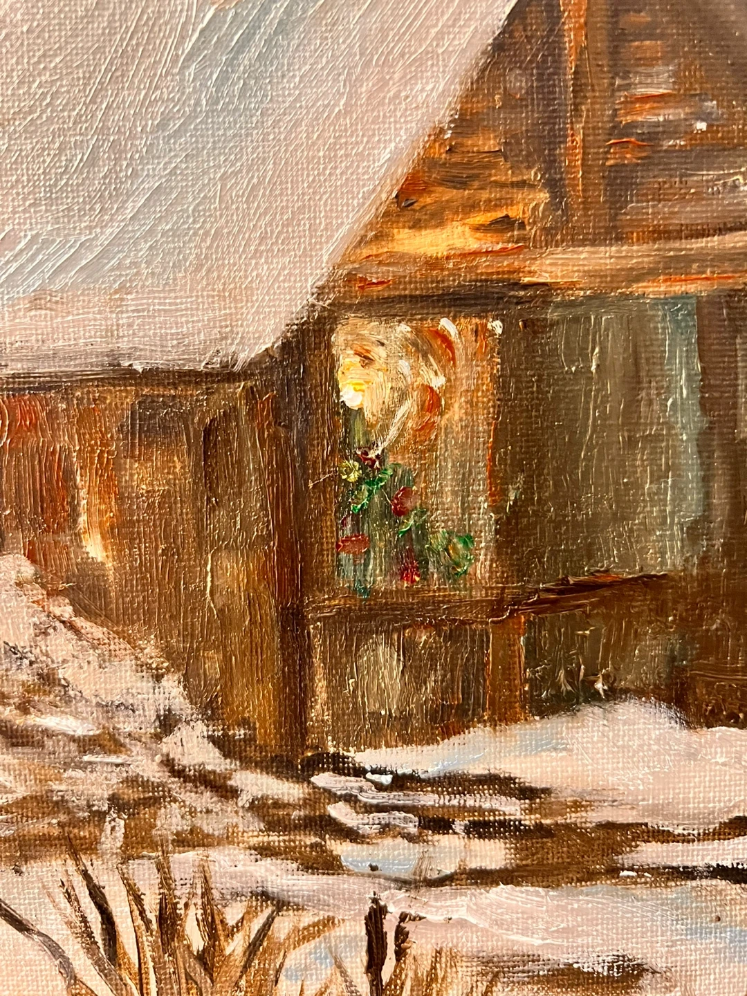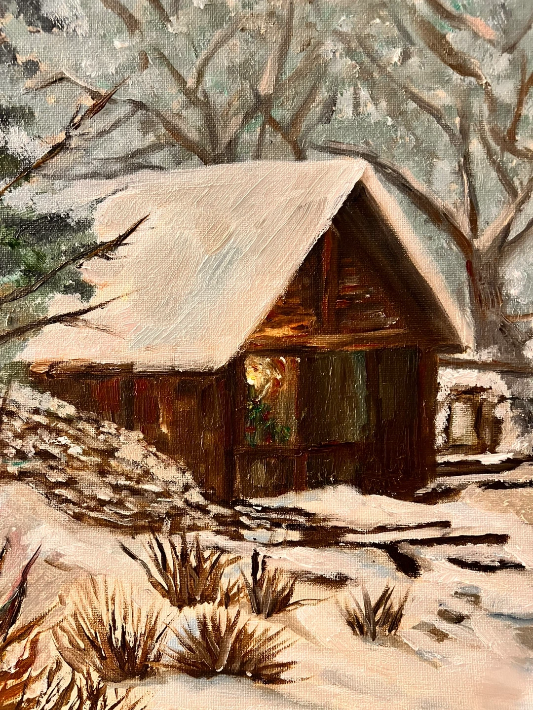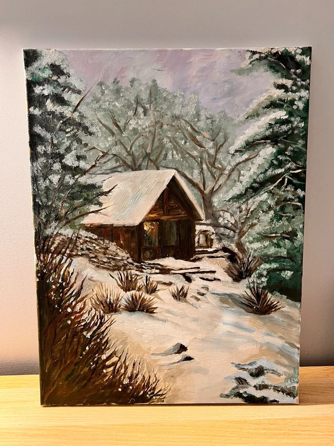Bring a touch of winter magic to your home with this original hand-painted snow landscape.