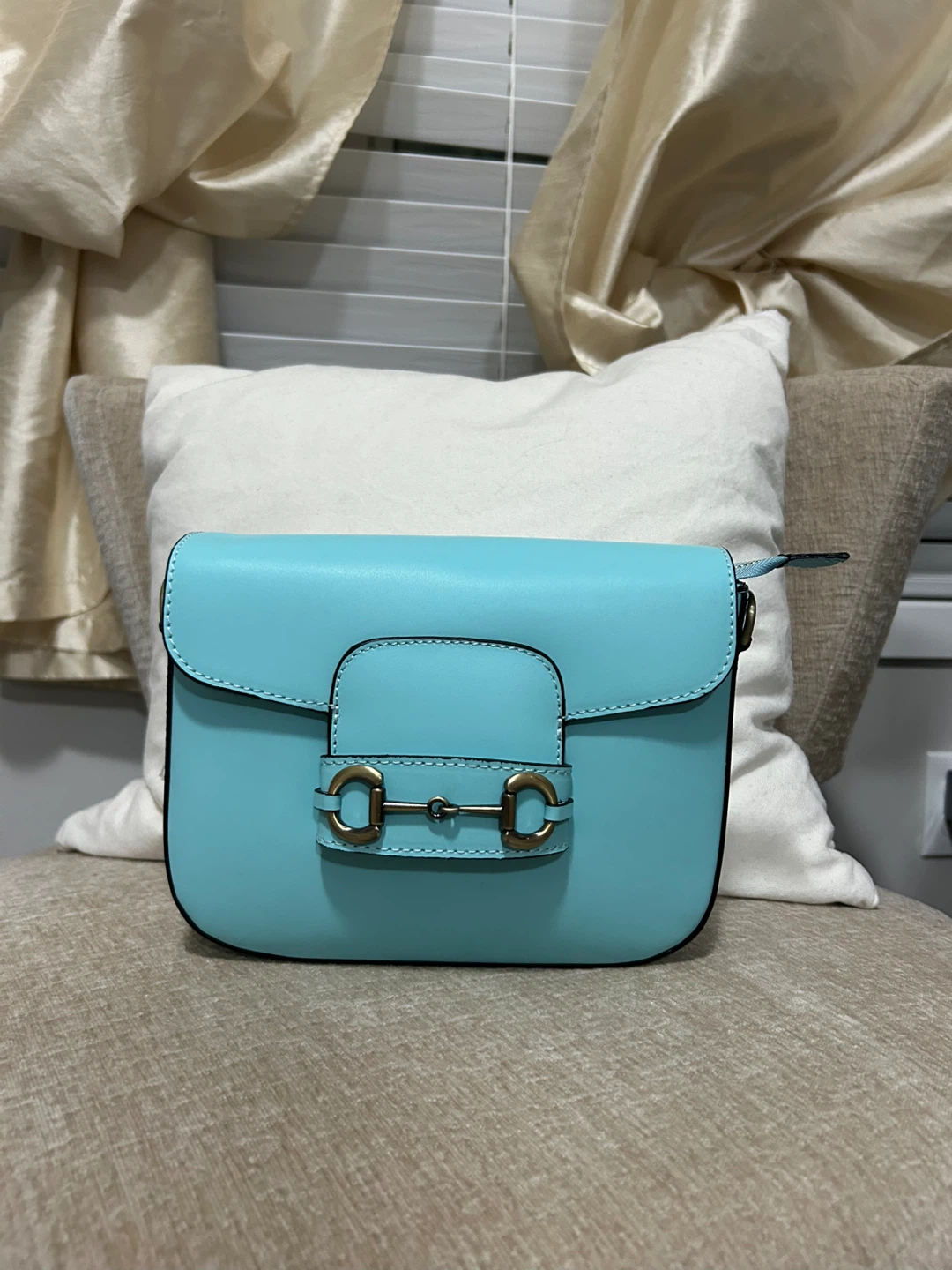 Here's a stylish crossbody bag in a lovely turquoise colour! It's perfect for adding a pop of colour to any outfit. The bag is in great condition and ready for a new owner