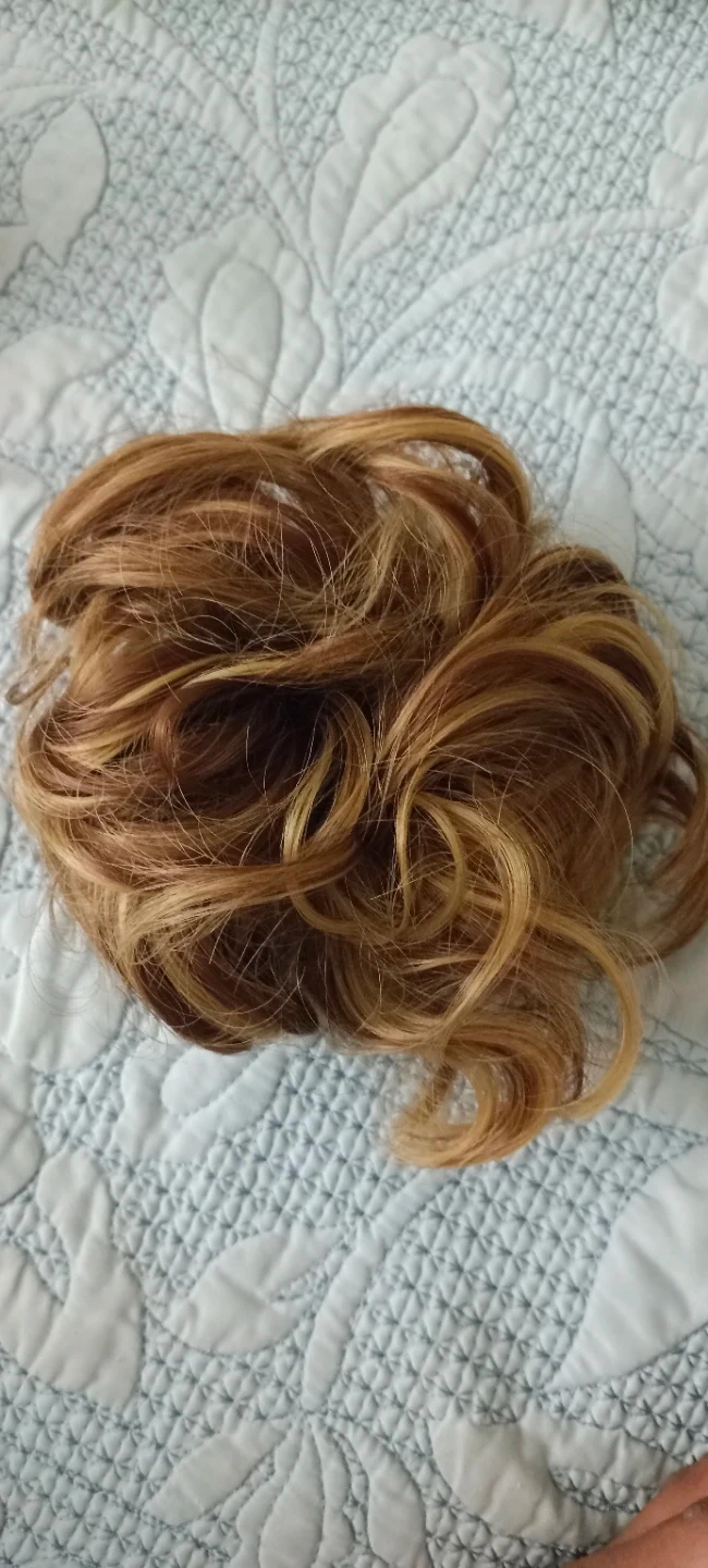 Selling a hair bun extension! It's a nice way to add some volume to your hair. The hair length is 10 inches and it comes in color 12H24.