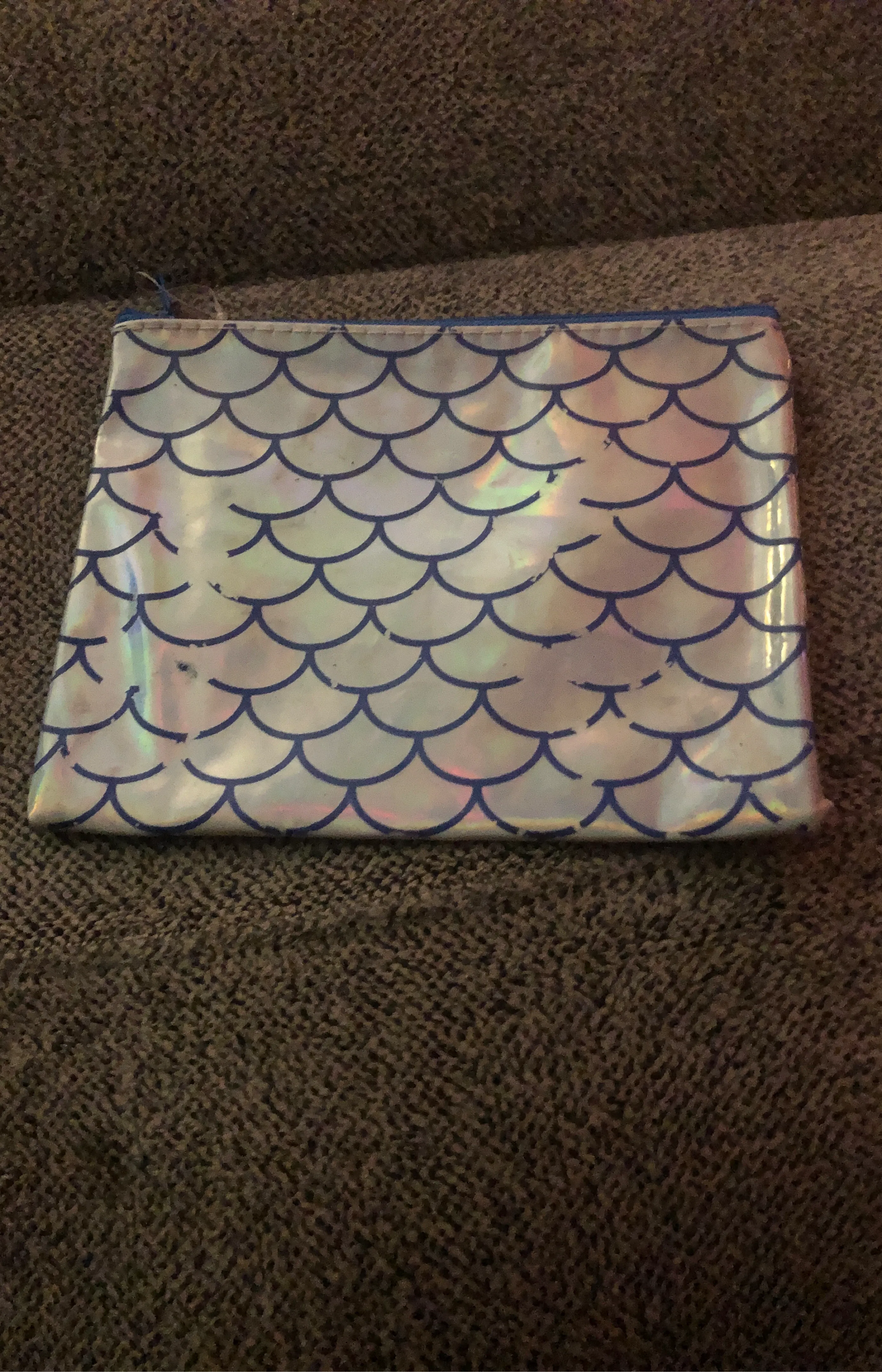 Cute cosmetic bag with a mermaid scale pattern! It's perfect for storing your makeup or other small items. It does have some signs of use, but overall it's in good condition and ready for a new home