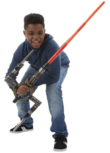 A long time ago in a galaxy far, far away, the Jedi and the Sith represented the light side and dark side of the Force. Take on the Jedi with this Star Wars BladeBuilders Spin-Action Lightsaber that extends for a duel with a flick of the wrist, and features a stylish spinning connector that allows attached Lightsabers or lightdaggers to rotate with ease. Kids can lock the spinning connector to keep the piece from rotating.