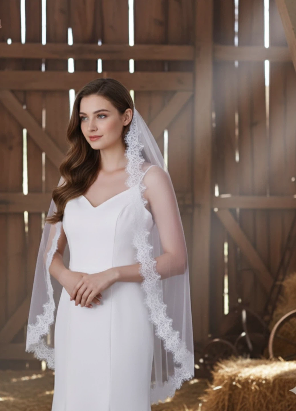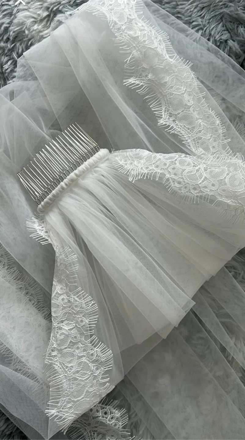 Selling a beautiful white wedding veil with delicate lace trim. It's in great condition and perfect for your special day