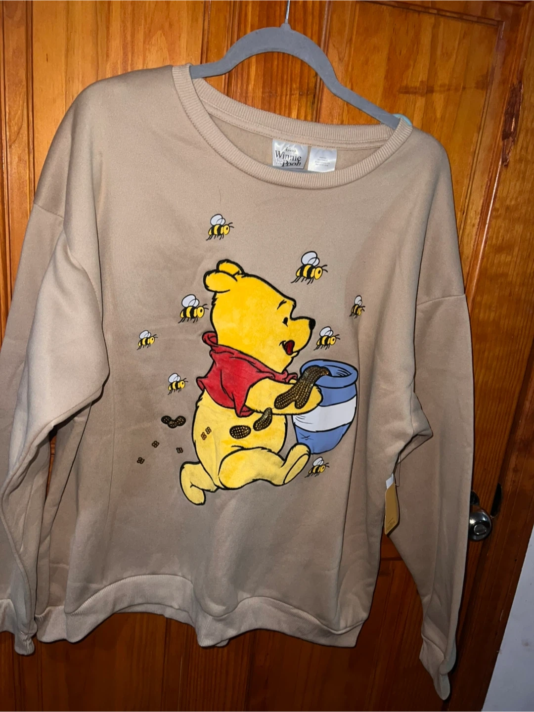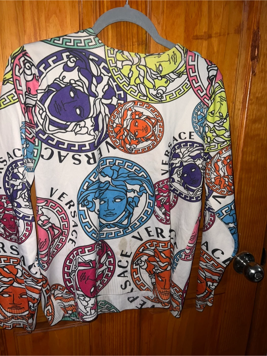 I'm selling a variety of clothing items, including a Versace sweater, a Winnie the Pooh sweatshirt, a black and red winter jacket, Adidas pants and Nike pants. These items are in used condition and may have signs of wear. Please see the pictures for details!