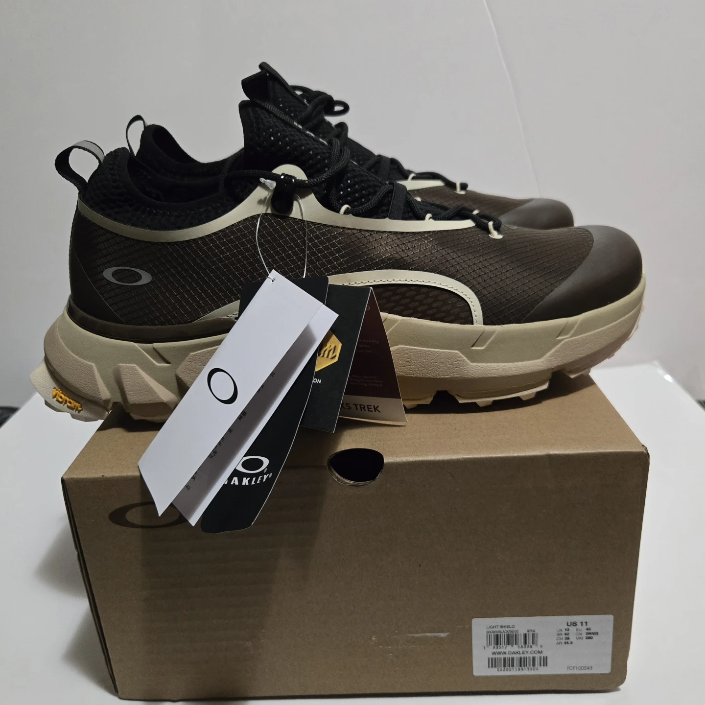Oakley Light Shield shoes, size US 11. These are brand new come with the original box. The soles are Vibram, so they're durable and have great traction. Perfect for everyday wear!