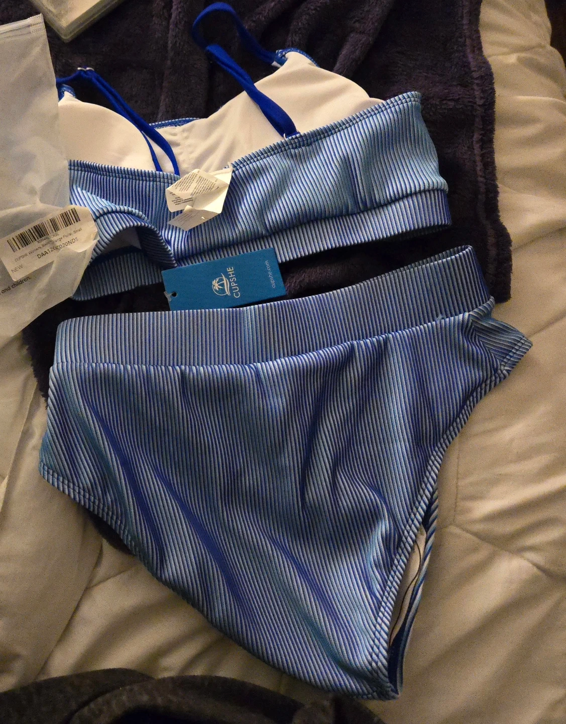 Selling a cute Cupshe bikini set in size small! The ribbed texture and blue colour are super stylish. Pick up only please