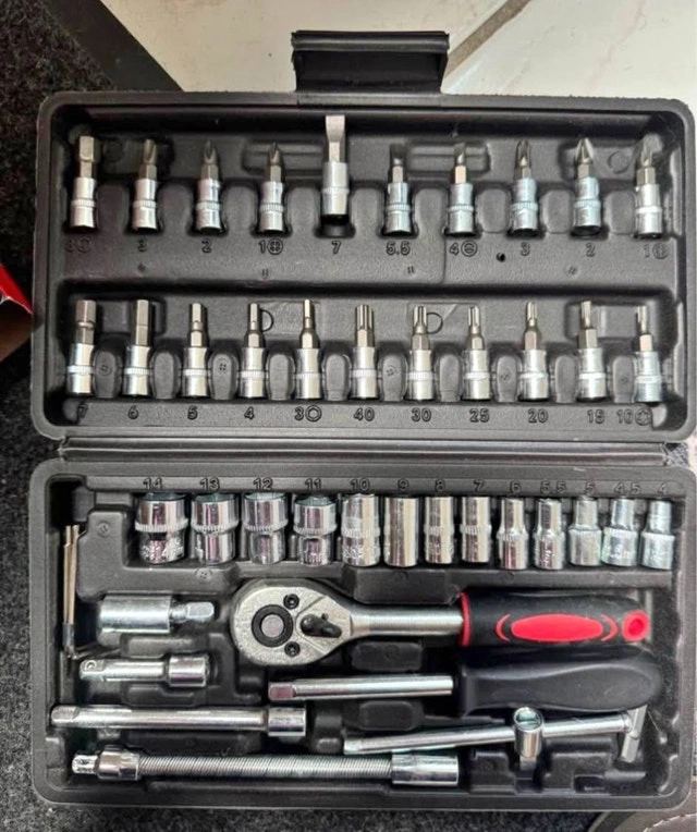 This socket set is a versatile addition to any toolkit, featuring a range of socket sizes and screwdriver bits to tackle various tasks. The set appears to be in used condition. Here are some specs: * Variety of socket sizes (metric and imperial) * Assorted screwdriver bits (Phillips, flathead, etc.) * Ratchet handle for efficient tightening and loosening * Extension bars for reaching recessed areas * Durable storage case This socket set is ready to roll! If the ad is up, it's available!