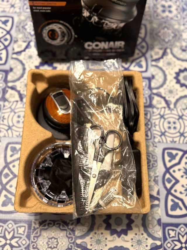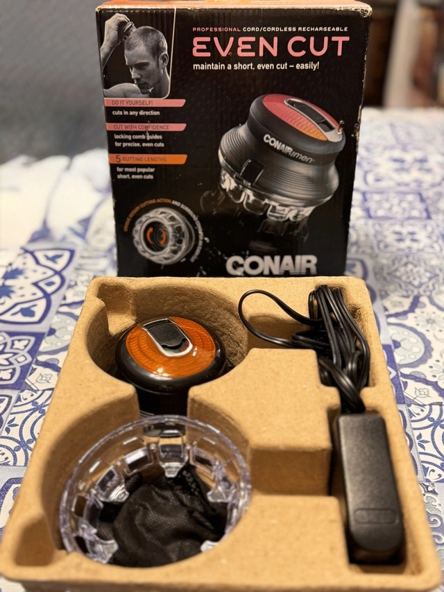 Achieve the perfect at-home haircut with this Conair Even Cut, a professional-grade cord/cordless rechargeable hair clipper. This innovative tool allows you to maintain a short, even cut easily and confidently, making self-haircuts a breeze. This item is in like-new condition, meticulously maintained in its original packaging. Here are some of the key features: * Cord/Cordless Functionality * Rechargeable * Cuts in any direction * Locking comb guide * 5 cutting lengths. It’s priced at $45.